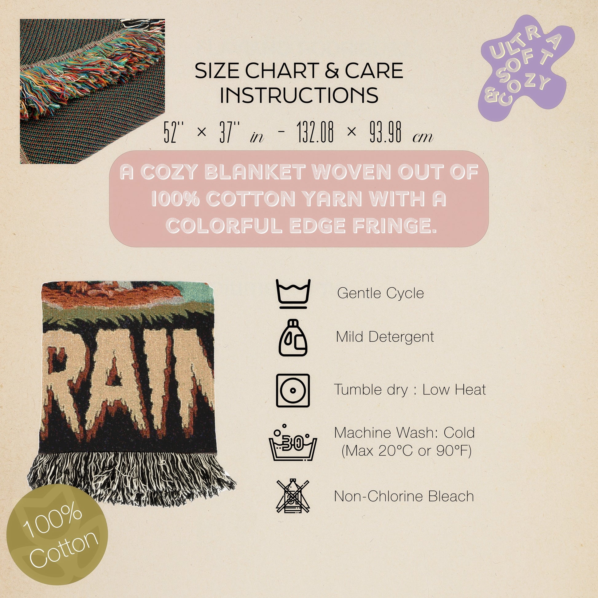 🧵 High-quality woven cotton throw doubles as large wall tapestry or cozy blanket