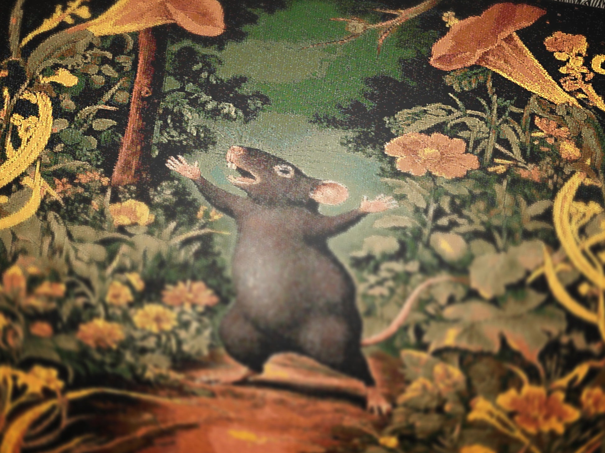 This blanket combines dark cottagecore aesthetics and vintage art deco style with it's whimsical rat forest print, making it a perfect fall throw or woven wall hanging. Featuring floral woven details and Victorian gothic charm, it’s an ideal rat lover gift or addition to rat-themed home decor. Whether used as a funny rat print accent or witchy home decor, this tapestry brings a touch of spooky and quirky elegance to any space, ideal for or anyone seeking a distinctive cozy valentines gift. Visit my page for more creepy cute stuff 👻