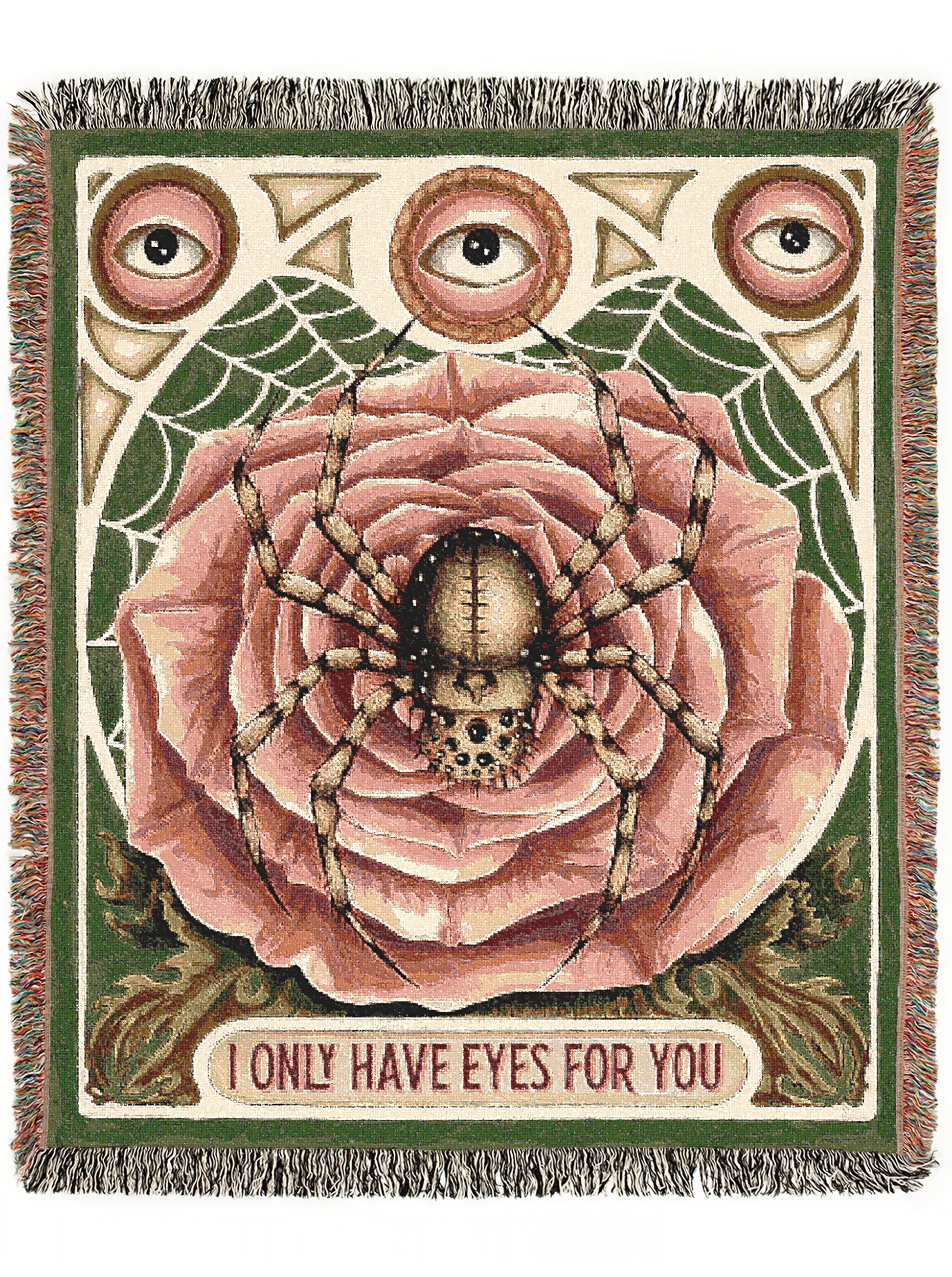 I Only Have Eyes For You, Creepy Cute Victorian Gothy Spider On A Rose Blanket, Vintage Spooky Dark Cottagecore Jacquard Throw Tapestry