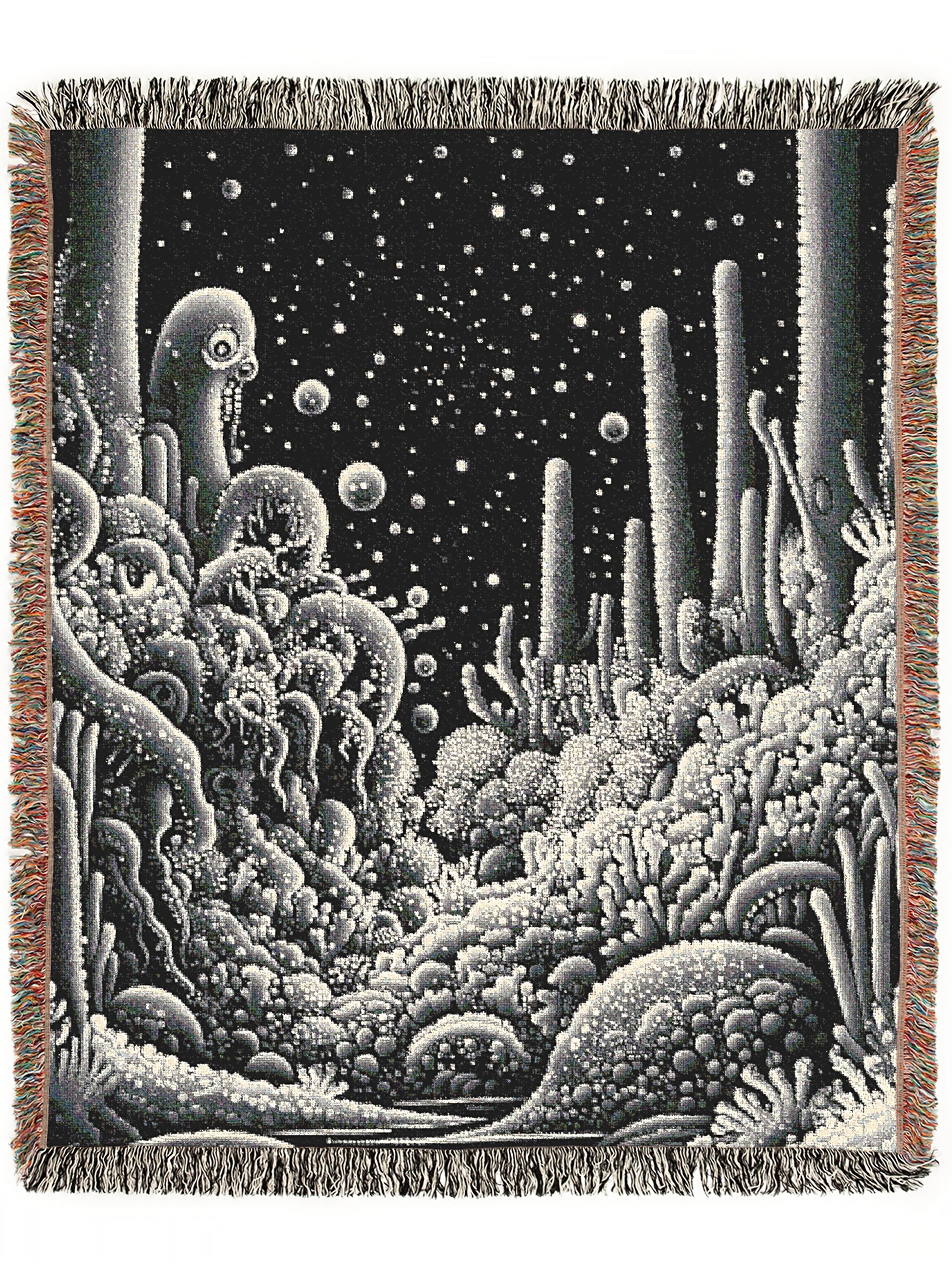 This woven throw blanket features a stunning ocean-inspired design, perfect for lovers of nautical decor, marine life, and coastal style aesthetics. Whether you're decorating a beach house, a fisherman’s retreat, or a maritime-inspired room, this fish woven tapestry adds a unique whimsigoth and dark touch. Blending crustaceancore art with a psychedelic twist, this blanket works beautifully as a couch throw, wall tapestry, or cozy bedding accent. A great gift for fishermen, ocean lovers, or anyone drawn to maritime scenic art, this beach-themed woven blanket is both stylish and functional.