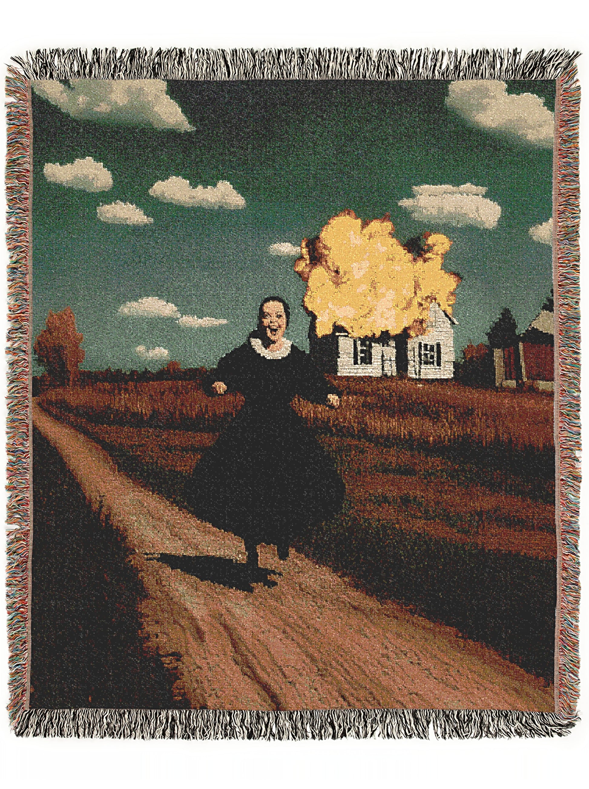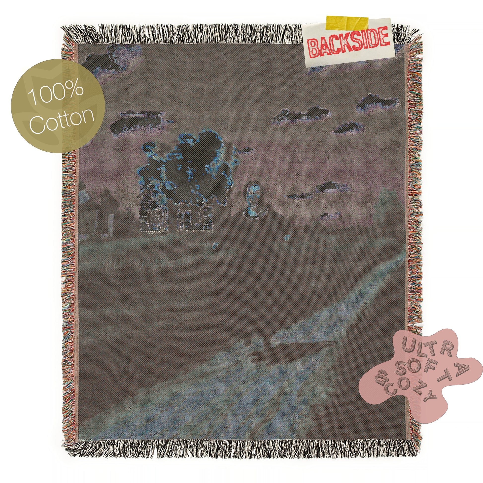 🏚️ Dark humor woven blanket with a striking and funny surreal design