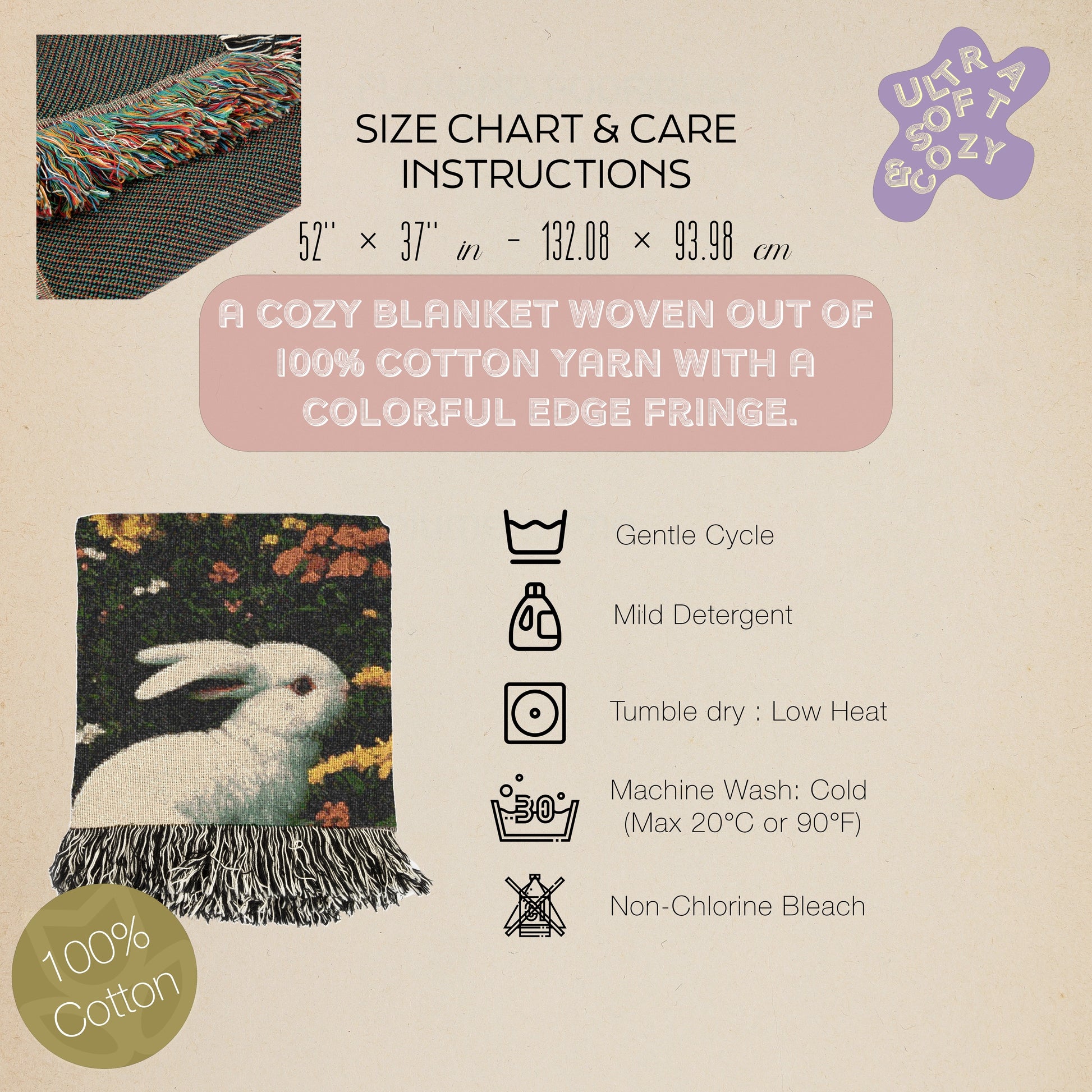 ✿ 60" × 50" in - 152.40 × 127.00 cm