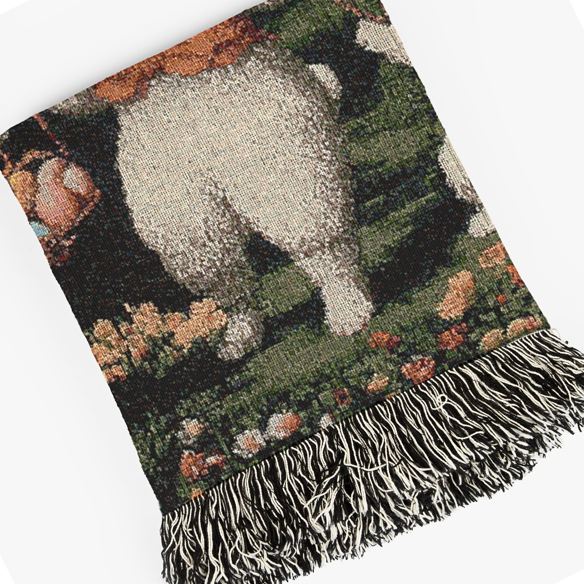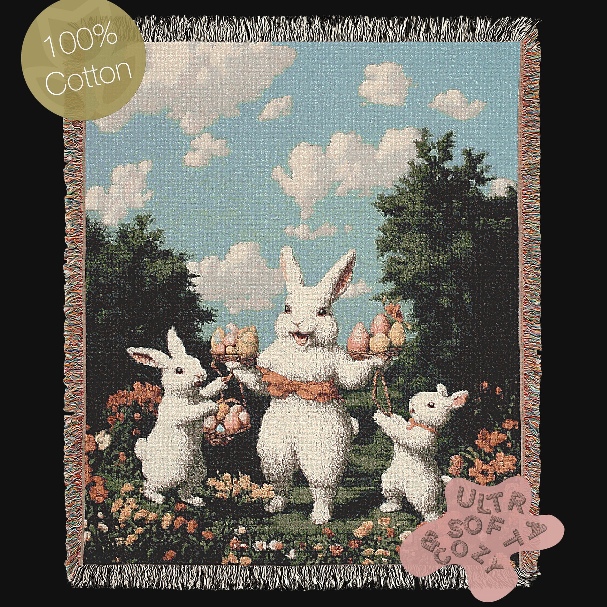 Ostara Bunny Woven Blanket, Easter Rabbit Tapestry, Spring Cottagecore Decor, Whimsical Pastoral Art, Garden Picnic Blanket