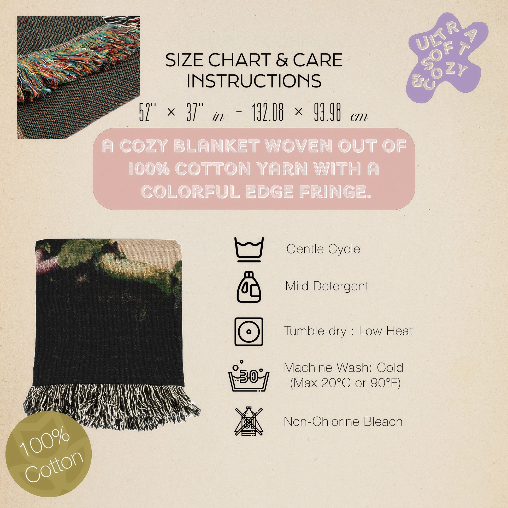 Whimsical Medusa meets vintage glamour in this bold woven throw blanket featuring a dark-haired beauty crowned with hypnotic colorful snakes. The black background sets the stage for a moody artistic and mysterious take on mythological iconography, combining gothic elegance with whimsigoth charm. Whether draped on your couch or hung as wall art, this piece is made for lovers of ancient goddess legends, serpent symbolism, and dramatic boho chic decor.