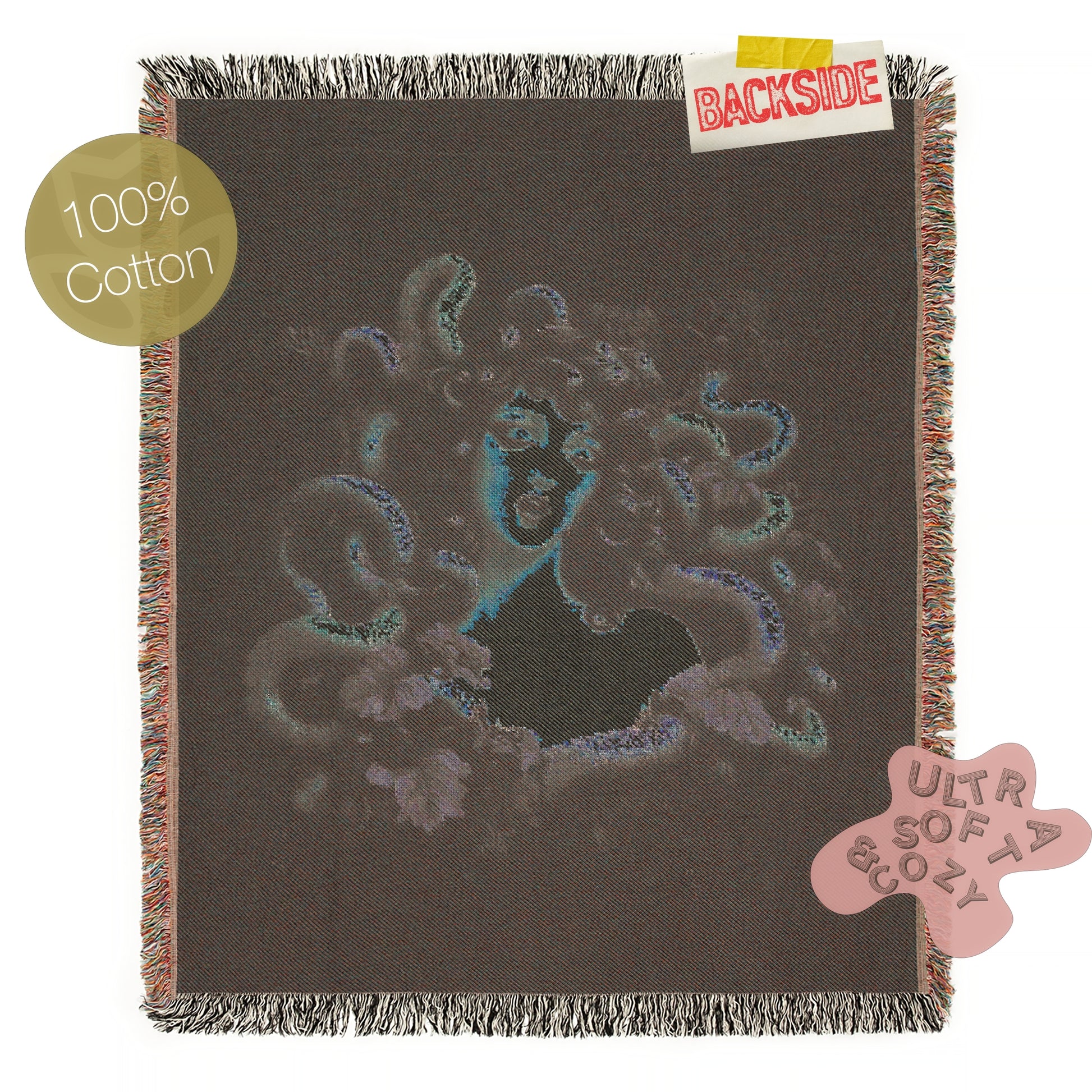 Medusa Woven Throw Blanket, Gothic Mythology Art, Dark Whimsigoth Decor, Serpent Hair Woman Blanket, Mythical Creature Tapestry