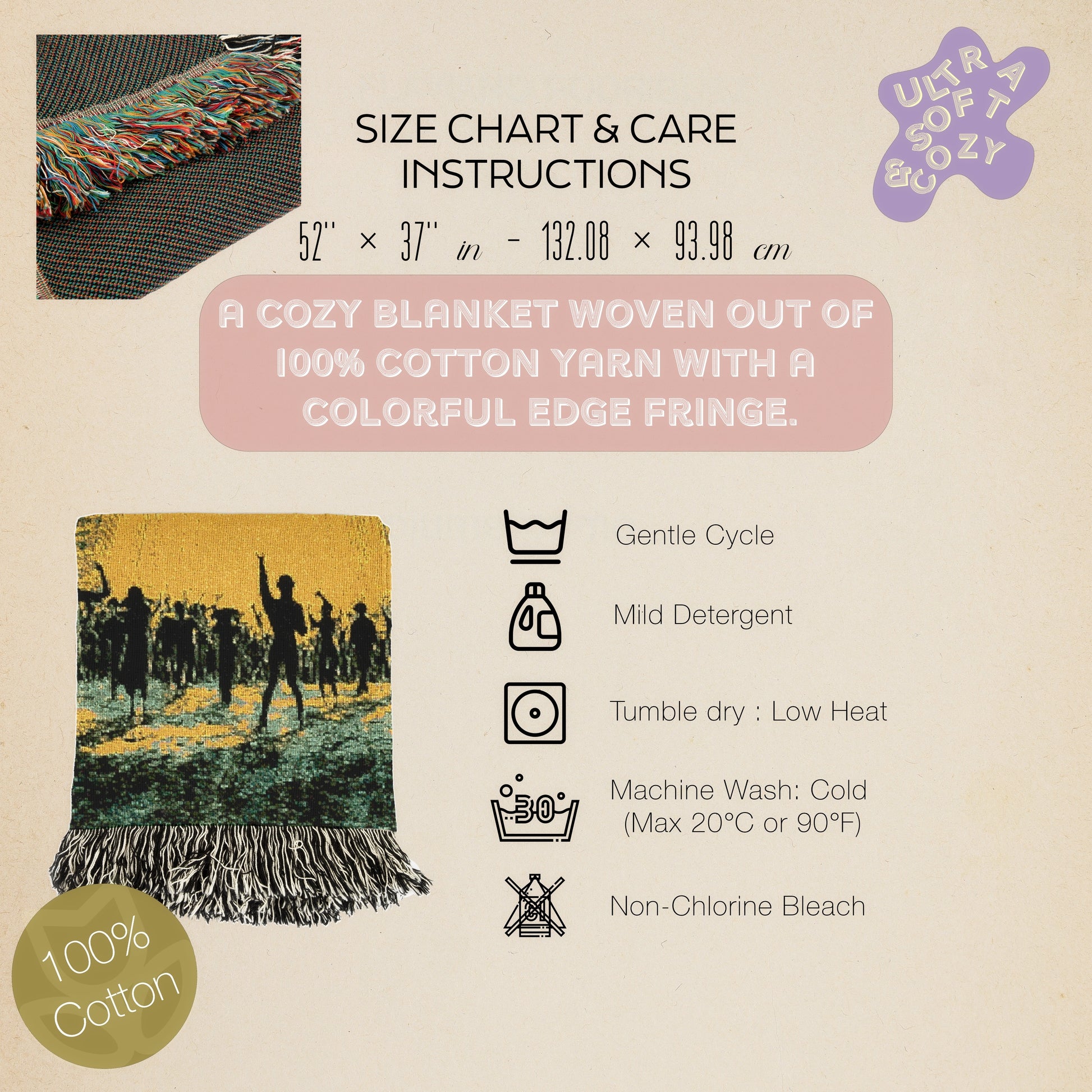 This hilarious large woven throw blanket captures the ultimate close encounter, an alien abduction in the middle of a wild music festival! Featuring a glowing UFO beaming down on a dancing crowd beneath a starry sky, this 100% cotton tapestry-style blanket blends festival vibes with sci-fi chaos for the perfect weirdcore home accent. Whether you're reminiscing about summer raves, stargazing, or just love absurd alien humor, this ultra-soft and cozy piece makes a statement on your couch, bed, or wall 🛸🎶👽
