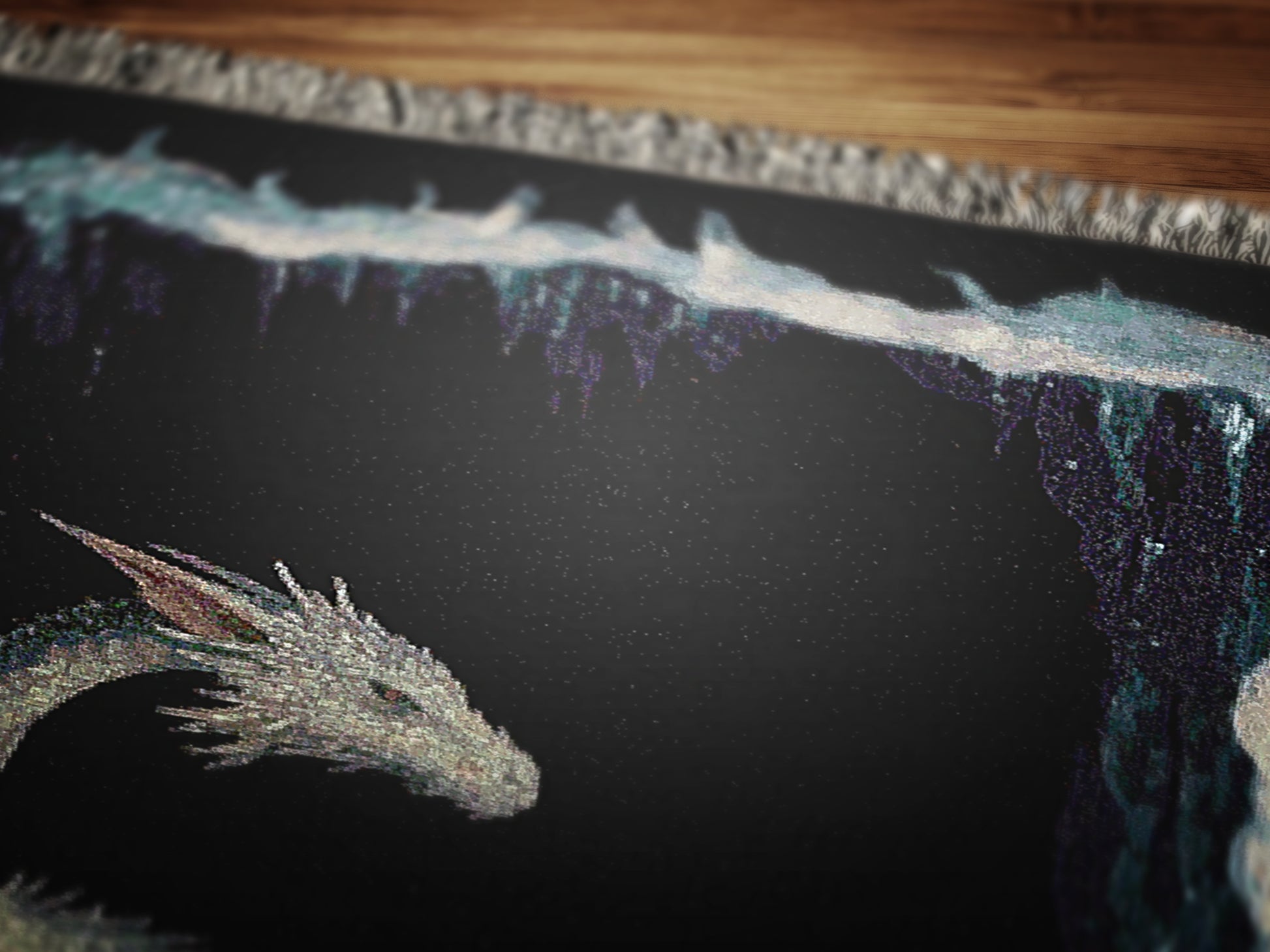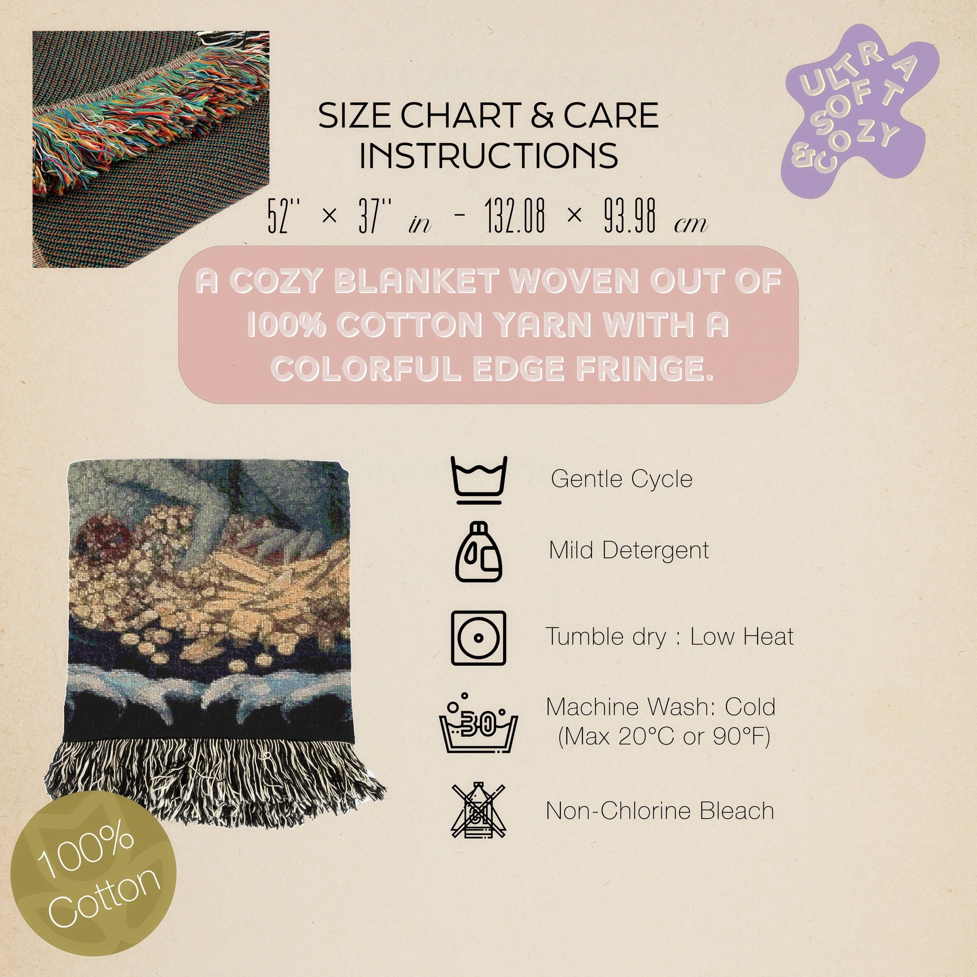 This striking woven blanket features a majestic ice-blue dragon resting atop a glittering antique treasure hoard in a frozen cavern. Framed by frosty stalactites and a border of ice, this fantasy large wall tapestry captures the chill and beauty of a winter dragon’s lair. Perfect for gothic and fantasy lovers, Dungeons & Dragons fans, or anyone drawn to mythical creatures and moody winter scenes 🐉❄️💎
