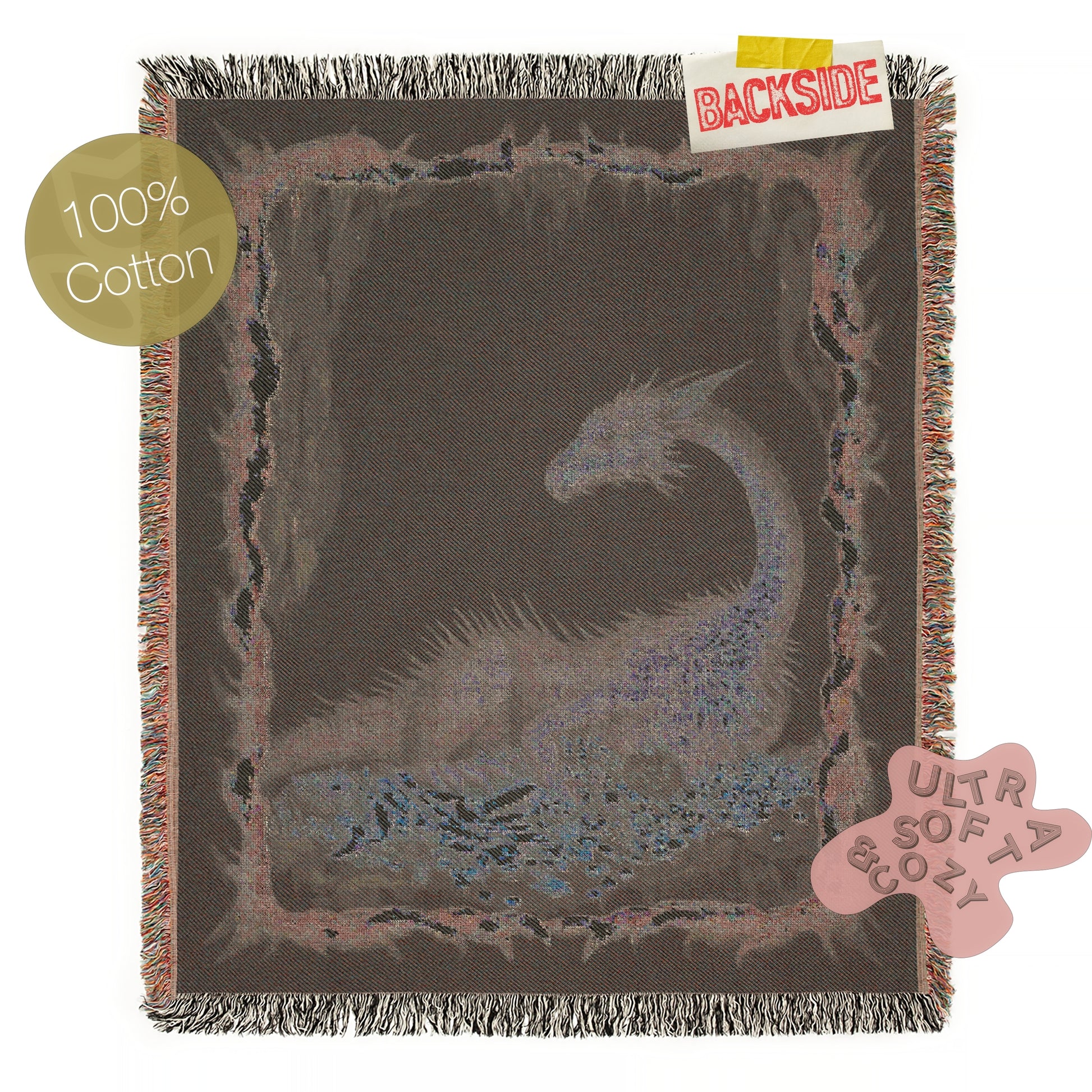Ice Dragon Woven Blanket, Cold Blue Dragon Frost Fantasy Large Wall Tapestry Throw, Winter Cave DnD Fans and Whimsigoth Decor, RPG Gifts