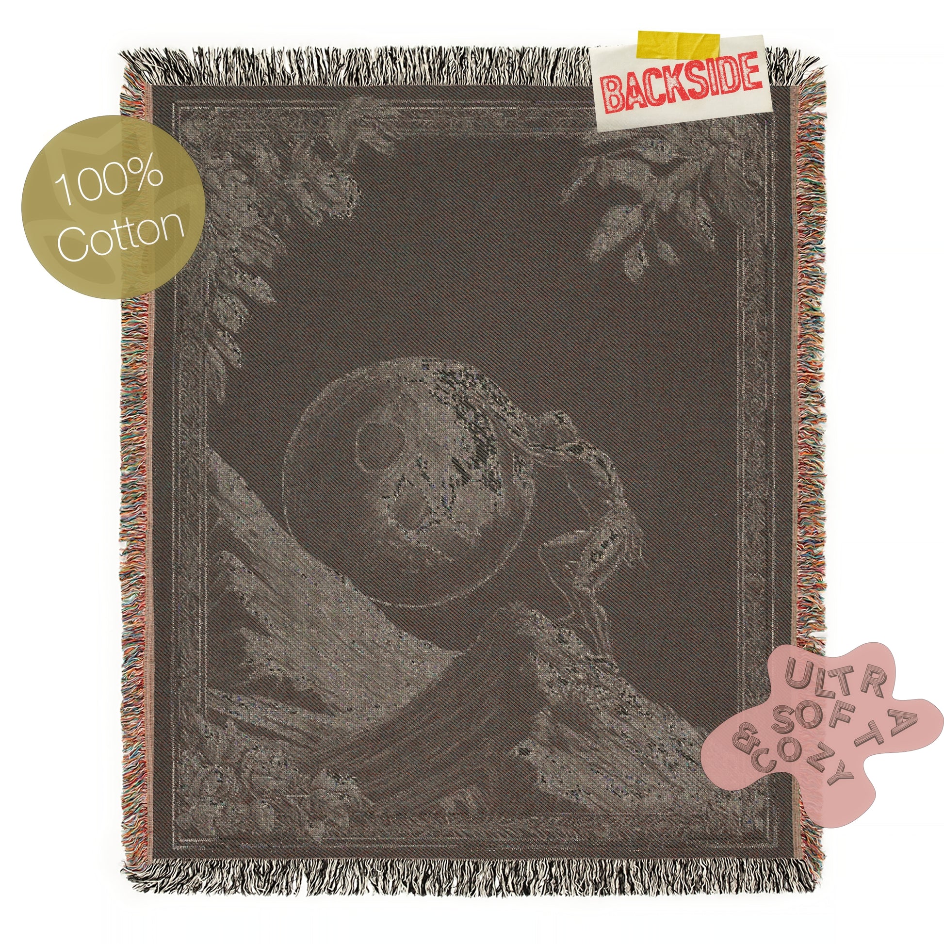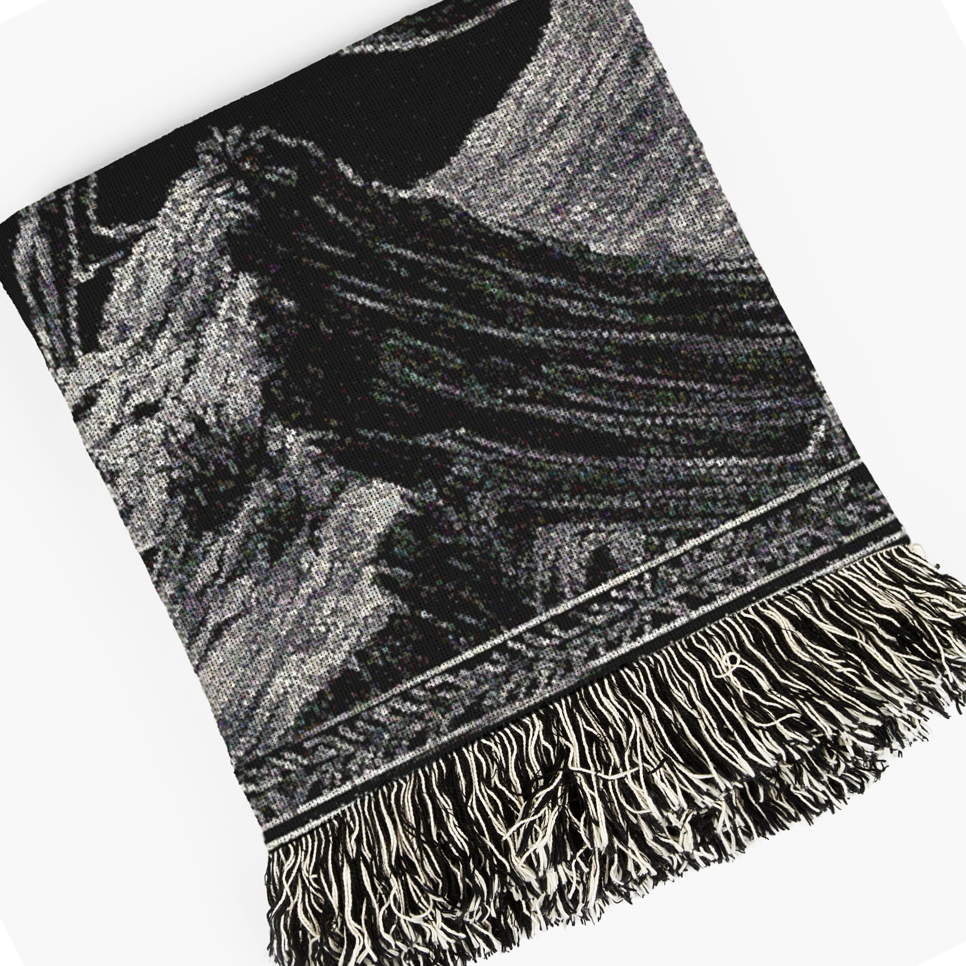 This striking woven blanket captures the haunting myth of Sisyphus, the ancient Greek figure condemned to eternally push a boulder uphill. A rich symbol of perseverance, fate, and philosophical struggle, this piece blends classical storytelling with witchcore aesthetics, creating the perfect altar cloth, wall tapestry, or medieval-style wedding decor. Whether used for cozy nights or as a large fantasy statement piece, this goddess-tier textile brings mystique to any sacred or academic space 🖤🌕🏛️