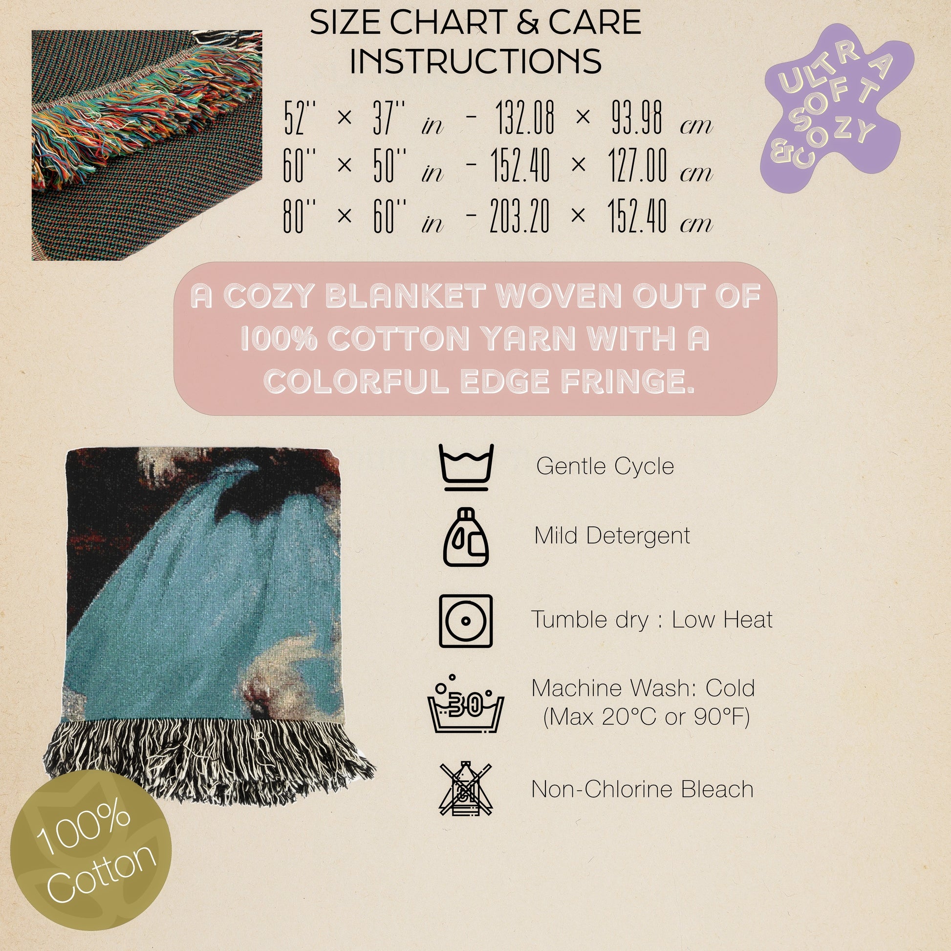 ๐งต Made of 100% cotton for ultra-soft comfort and tapestry texture