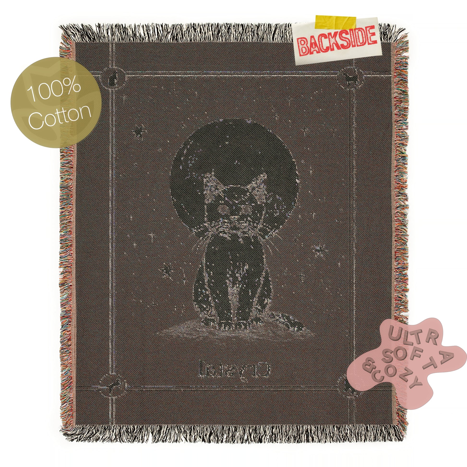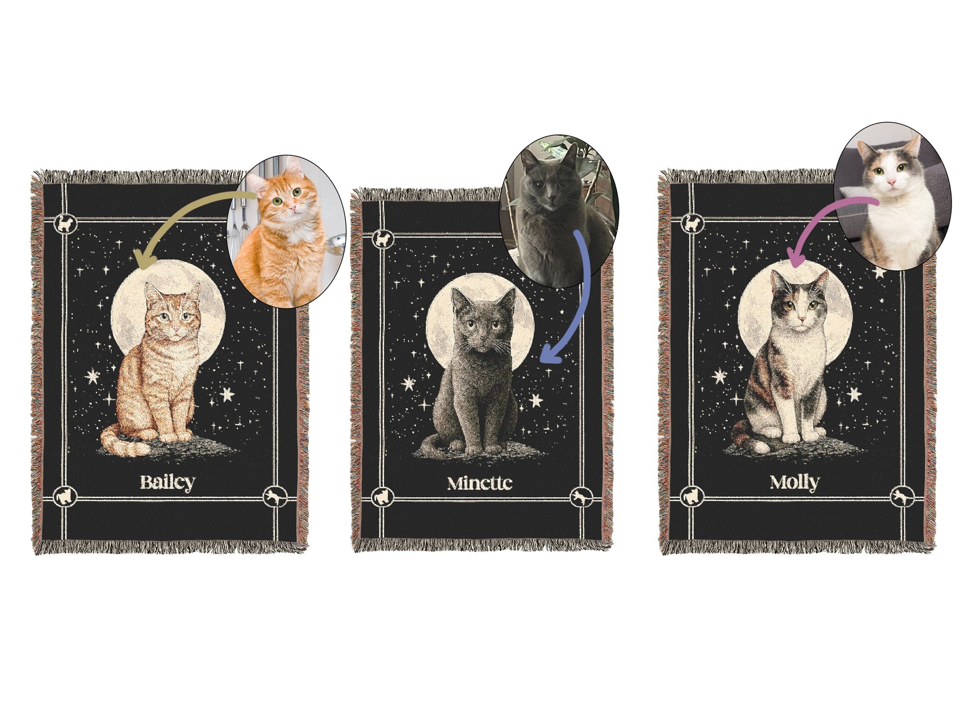 Personalized Cat Blanket, Custom Name Moon Large Tapestry, Pet Remembrance Decor, Celestial Cottagecore Whimsigoth Cat Wall Art