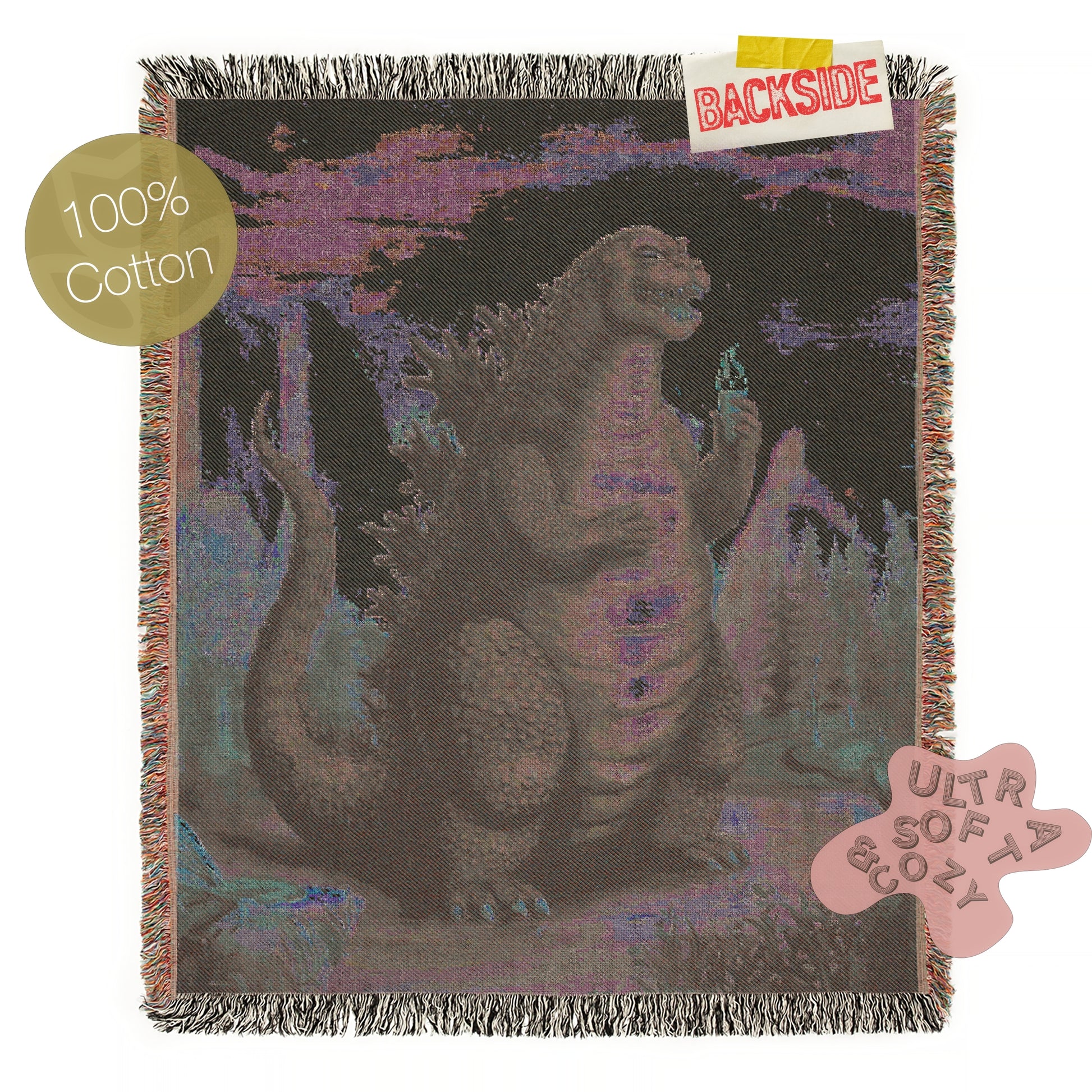 Godzilla And Icecream, Cotton Woven Throw Blanket, Quirky Playful Kaiju Gojira Funny Tapestry, Woven Wall Art, Weirdcore Decor Gift