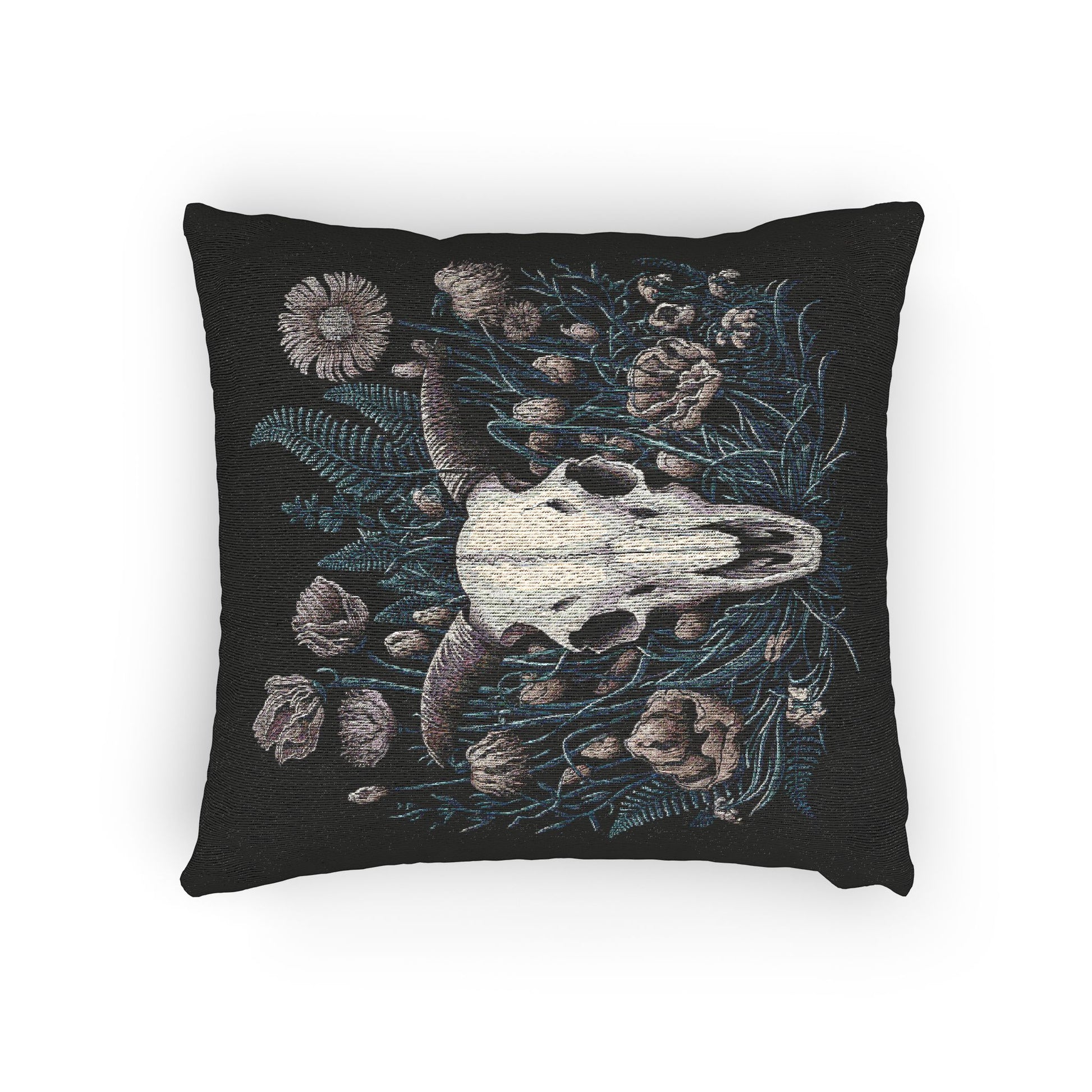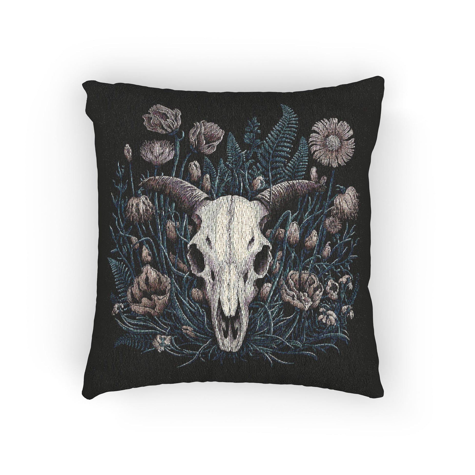 C-3 Floral Ram Skull Woven Pillow