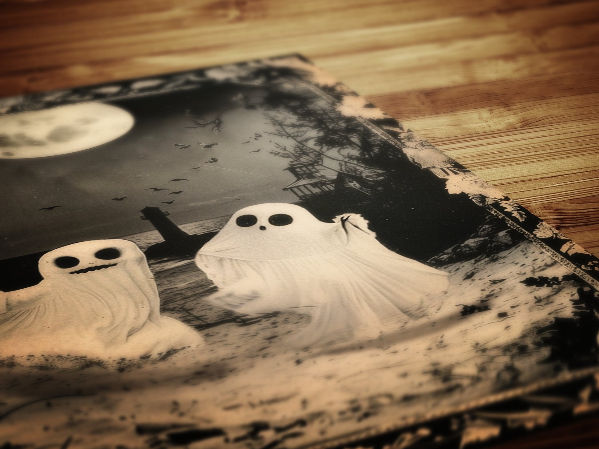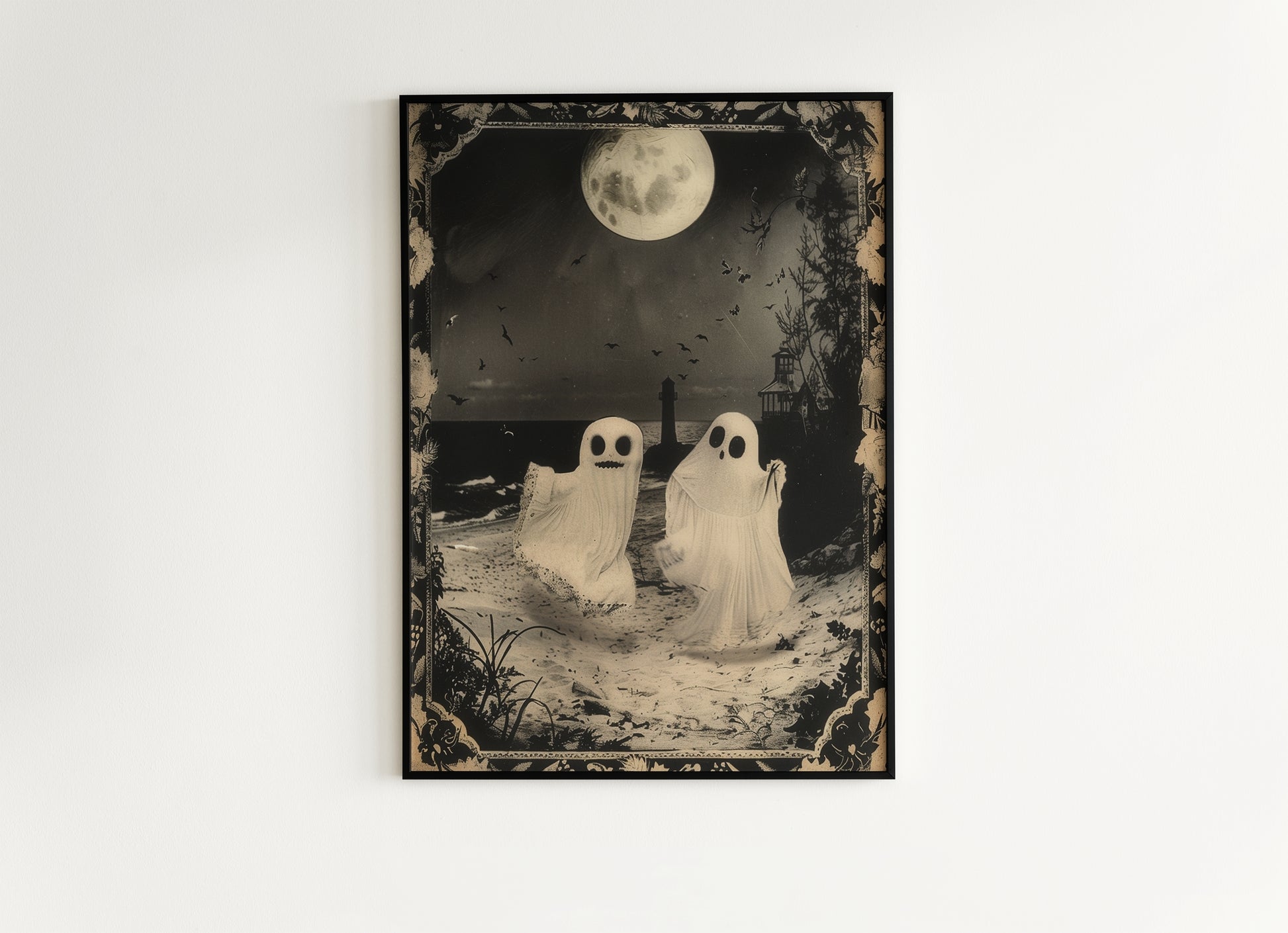 Ghost Couple Playing On the Beach, Vintage Poster, Cute Gothic Relationship, Dark Academia Decor, Spooky Goth Home Decor