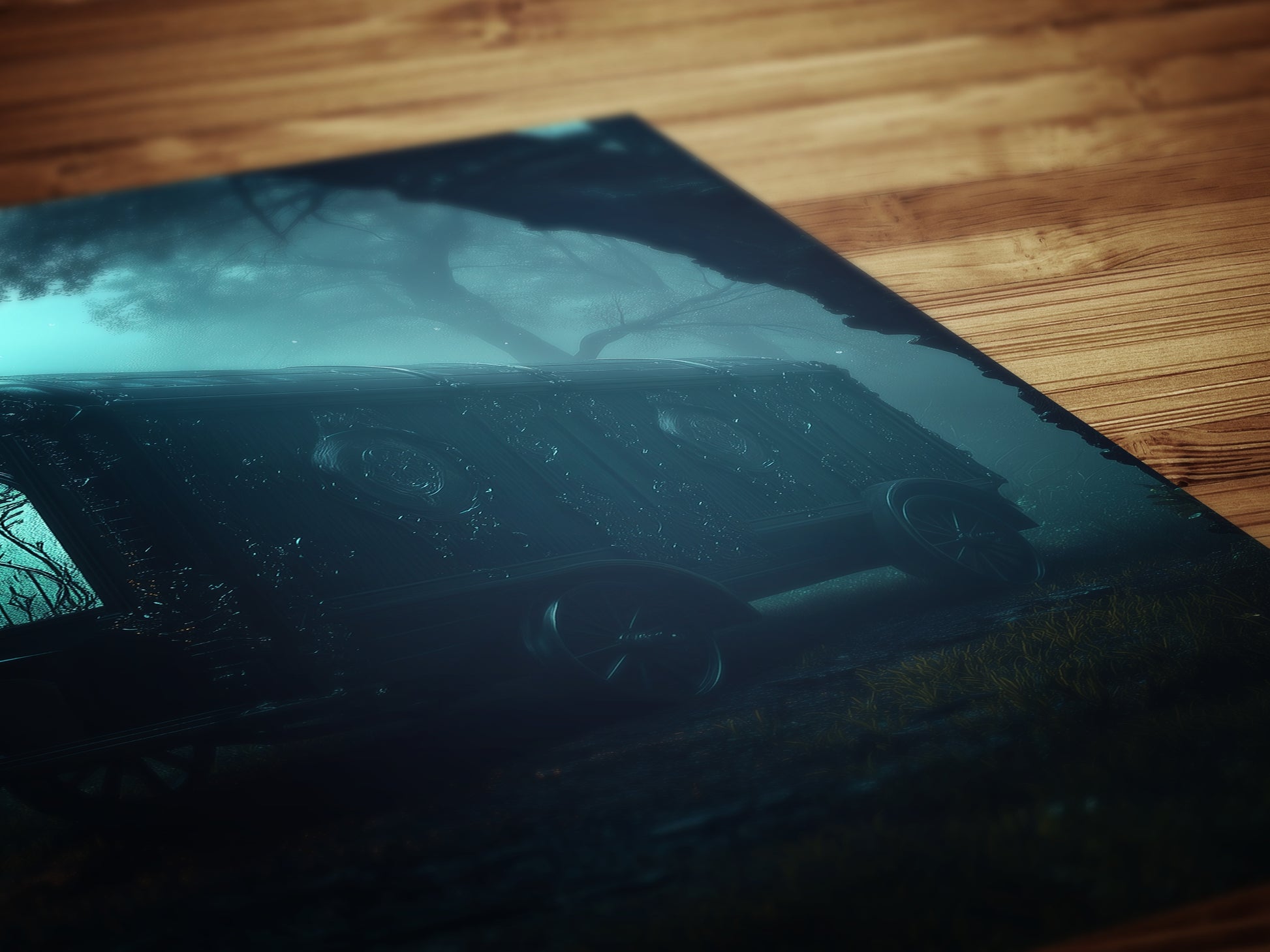 This haunted caravan carriage wall art captures the eerie beauty of a gothic forest at night, illuminated by a ghostly moon. The ornate details of the spooky vintage wagon add a mysterious, dark fantasy feel, making it an ideal piece for those drawn to whimsigoth aesthetic decor and dark academia art. Whether used as a gothic forest artwork, haunted caravan print, or medieval-inspired decor, this piece evokes the essence of mystery and folklore. A must-have for fans of fantasy, supernatural tales, and gothic horror themes.