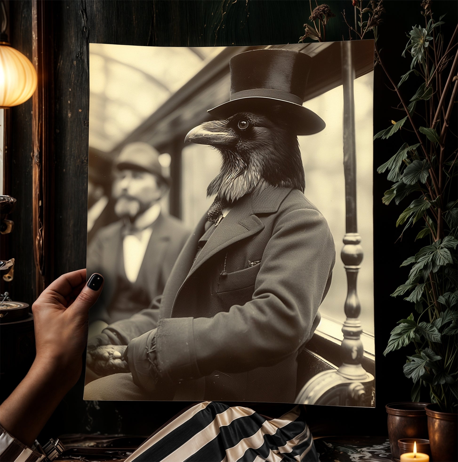 This Victorian-inspired raven wall hanging photographs features a surreal raven dressed in formal attire, blending vintage animal photography with gothic elegance. A perfect piece for dark academia lovers, goblincore fans, or anyone who appreciates bizarre and birdwatching decor π―οΈπ€