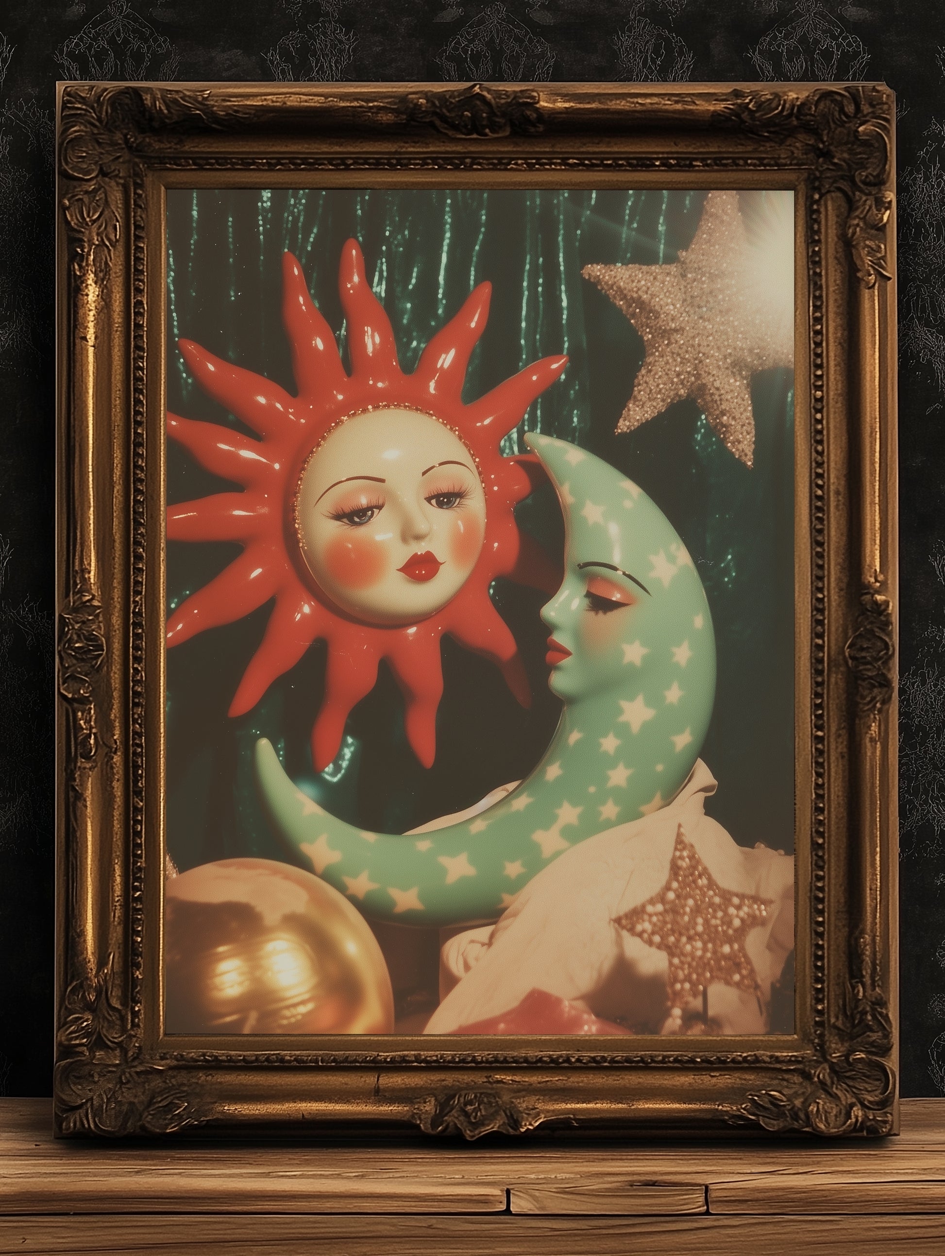 Sun and moon celestial art print in a nostalgic 90s aesthetic ππβ. Featuring a vivid red sun and dreamy teal moon with star details, this piece is perfect for anyone drawn to whimsical decor, tarot art, or celestial vibes. A beautiful fit for dark cottagecore, whimsigoth, or fairycore spaces.