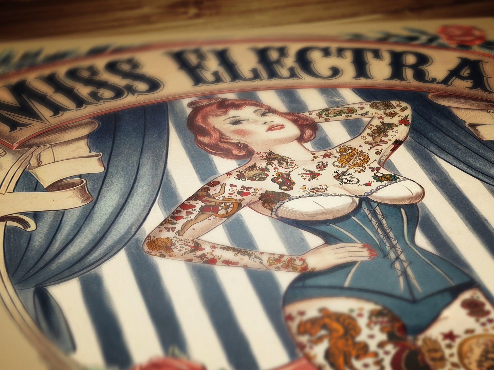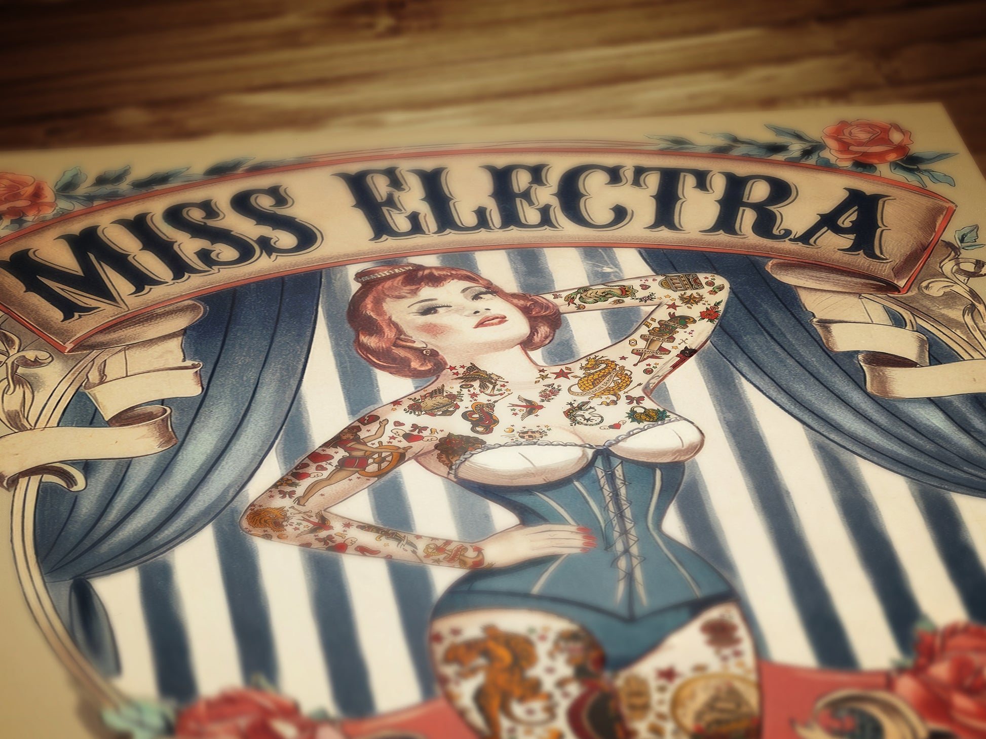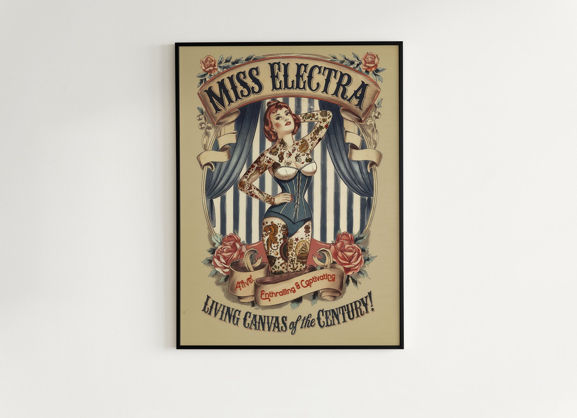 Step into the world of vintage circus sideshows with this stunning art print of Miss Electra the tattooed girl, the living canvas of the century! Featuring classic tattoo art and old-school circus charm, this piece blends retro oddities decor with a whimsical gothic twist. Perfect for curiosities collectors, tattoo lovers, and fans of mystical circus art, this print adds character and bold style to any space. 🎪🖤🌹