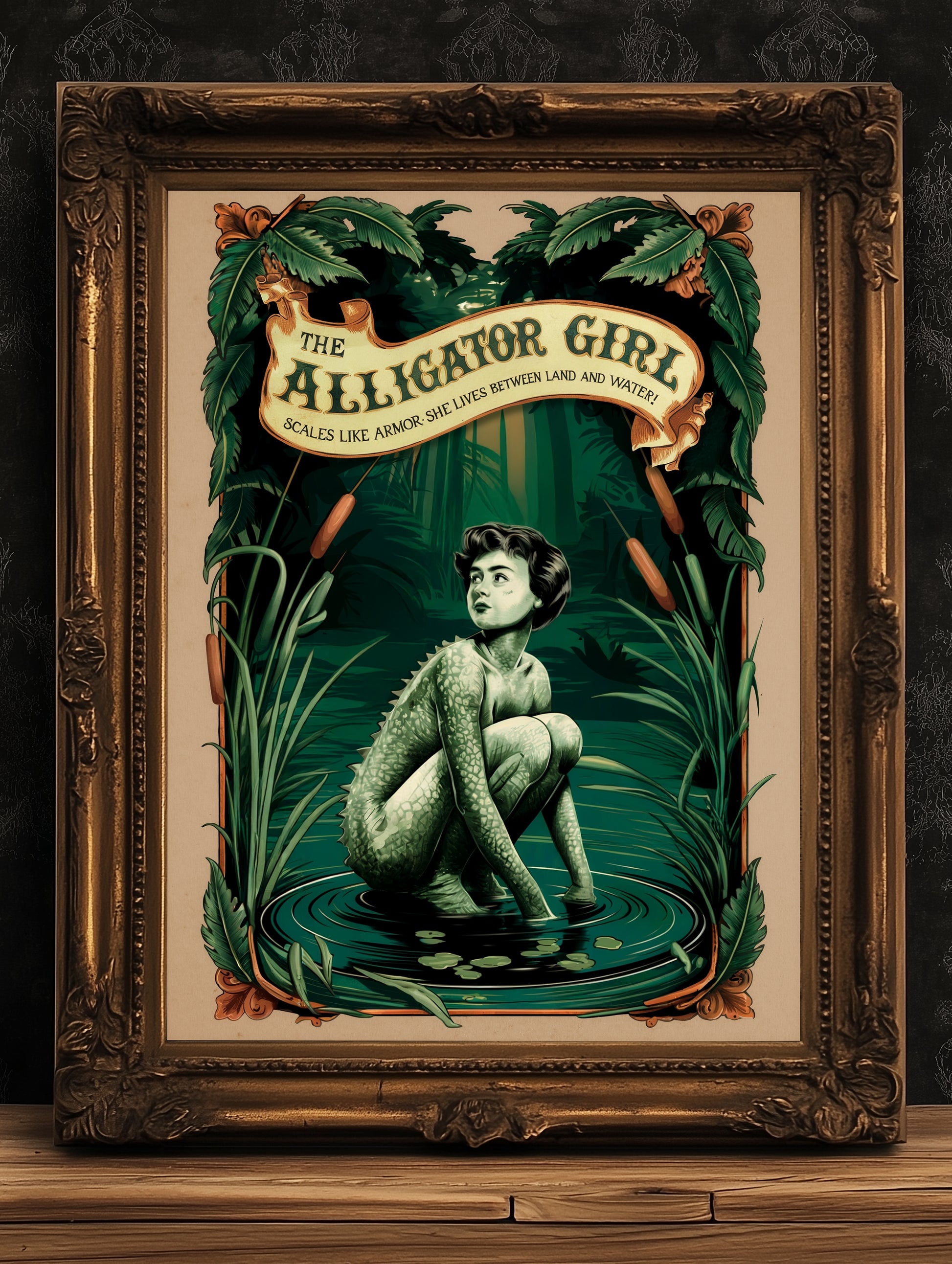 The whimsical Alligator Girl takes center stage in this vibrant retro circus poster packed with mystical vibes and freakshow flair. Perfect for fans of oddities, curiosities, and whimsigoth decor, this bold artwork adds instant character to any space. πβ¨
