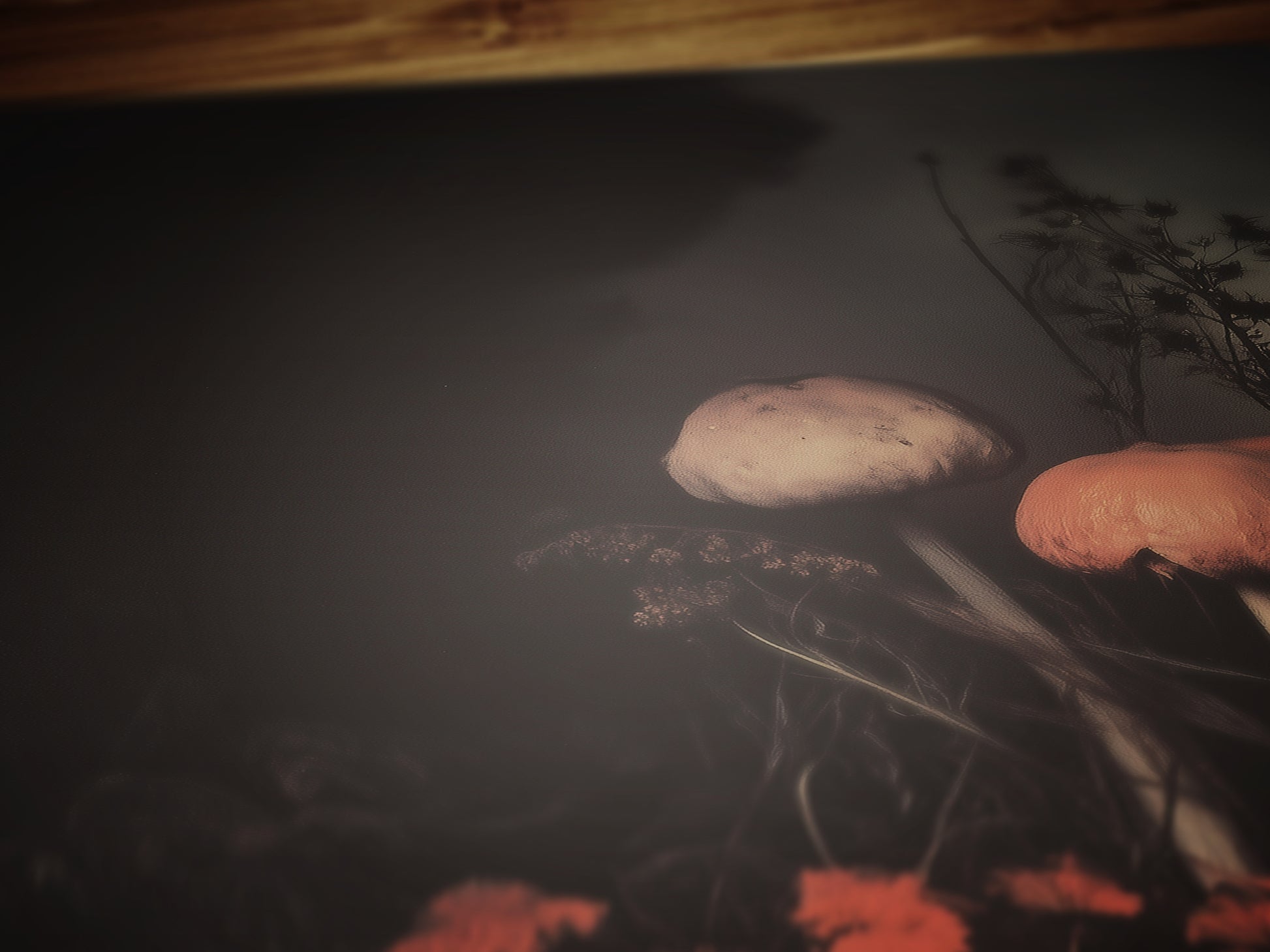 π Dark Mushroom & flowers Print: A mystical still life with baroque-inspired composition