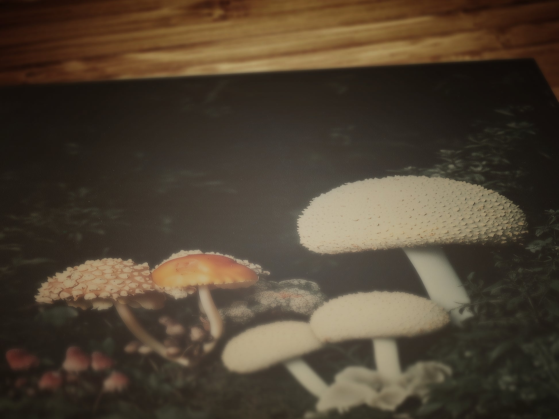 🍄 Dark Florals and Mushroom Print: Features delicately lit fungi with surreal, atmospheric depth
