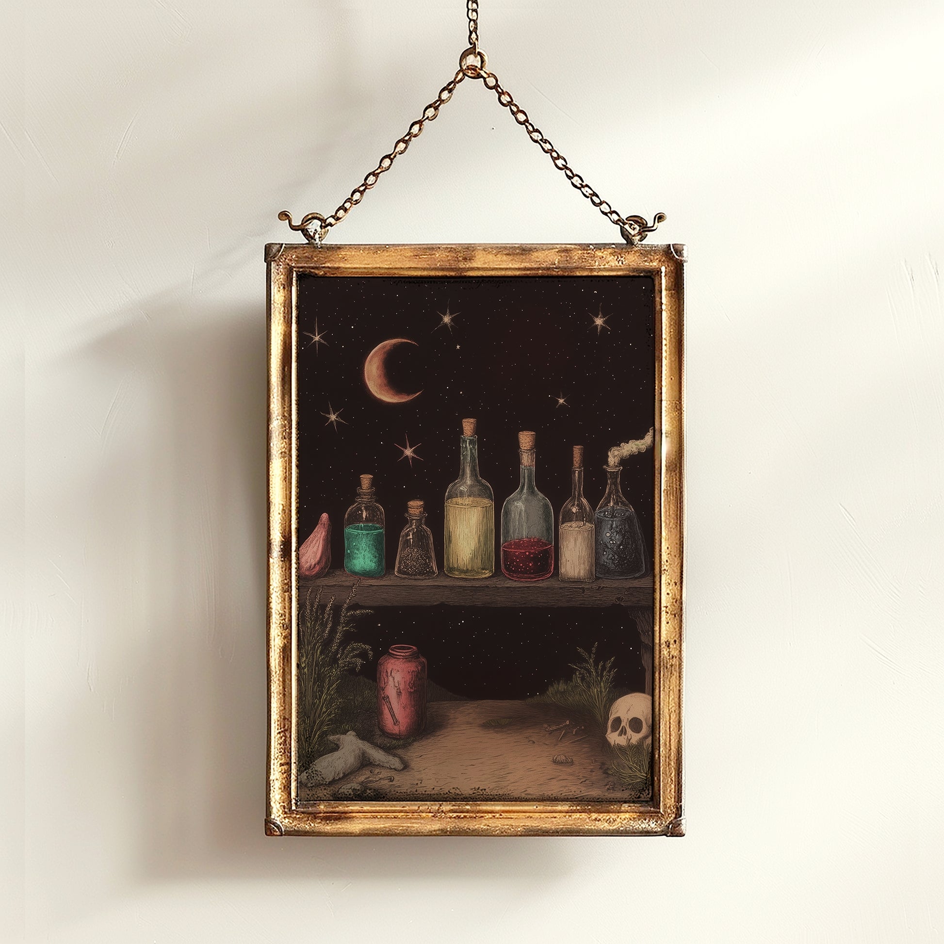 Cast a charming spell over your space with this alluring apothecary bottle art print. 🔮🌌