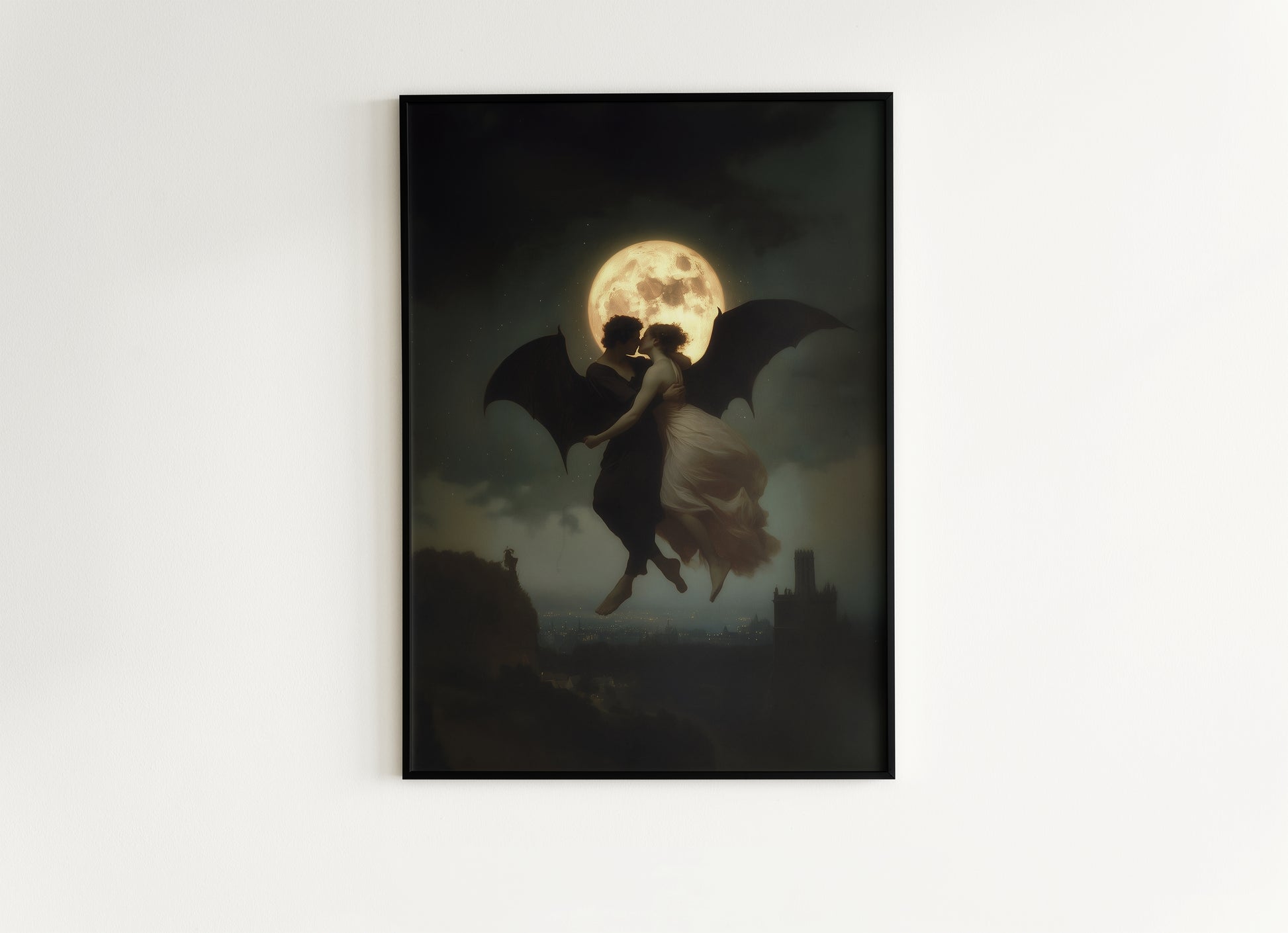 Demonic Love Painting, Demon and Woman Dancing in Moonlight, Dark Academia, Vintage Occult Art Print, Dark Fantasy Home Decor Poster