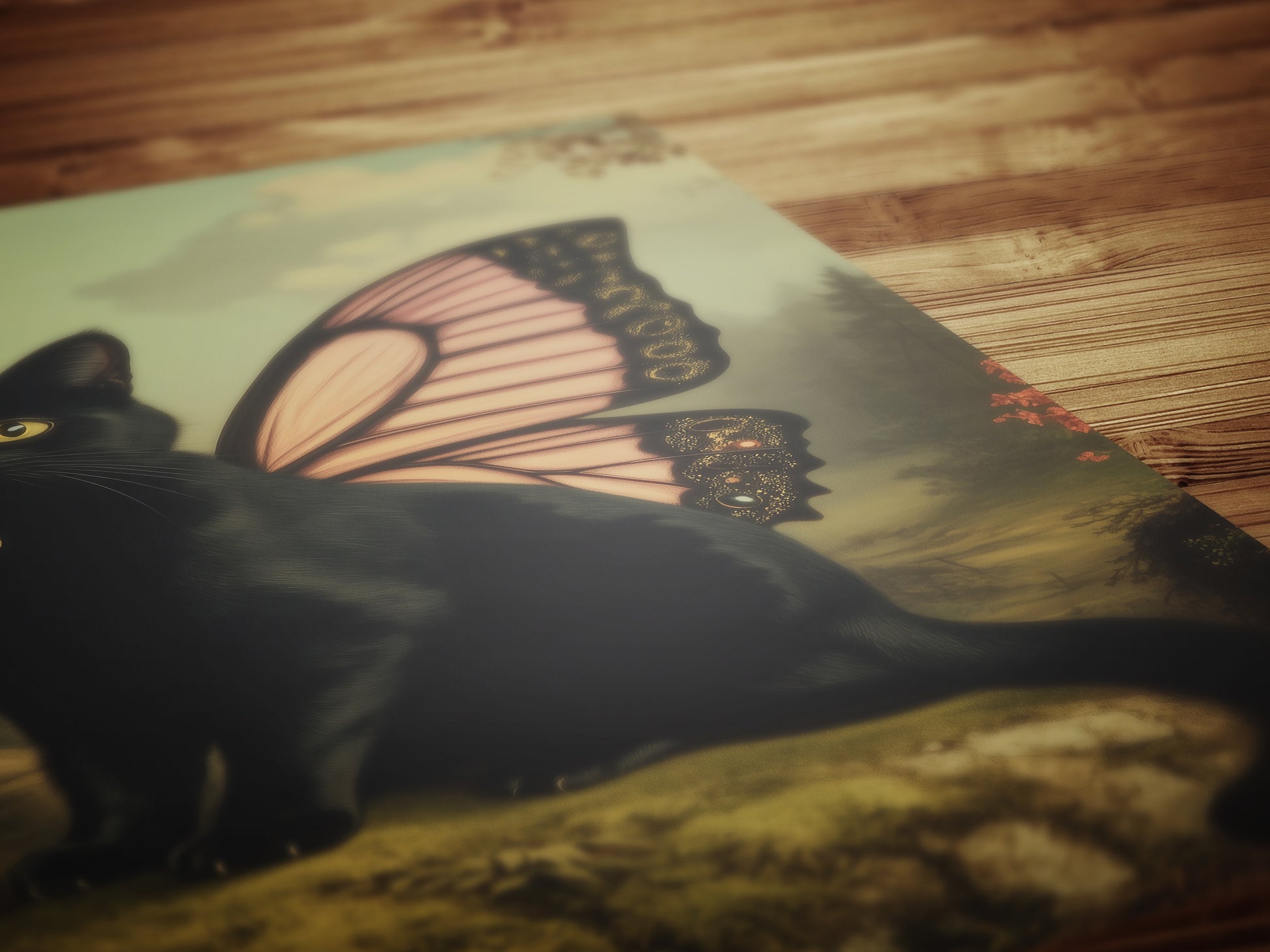 A magical blend of elegance and mischief, this black cat with fairy wings is the perfect fantasy accent for cat lovers 🐈🦋🌙 Styled like a vintage photograph with gothic flair, this art print adds enchantment to bohemian homes, weirdcore collections, or quirky gallery walls.