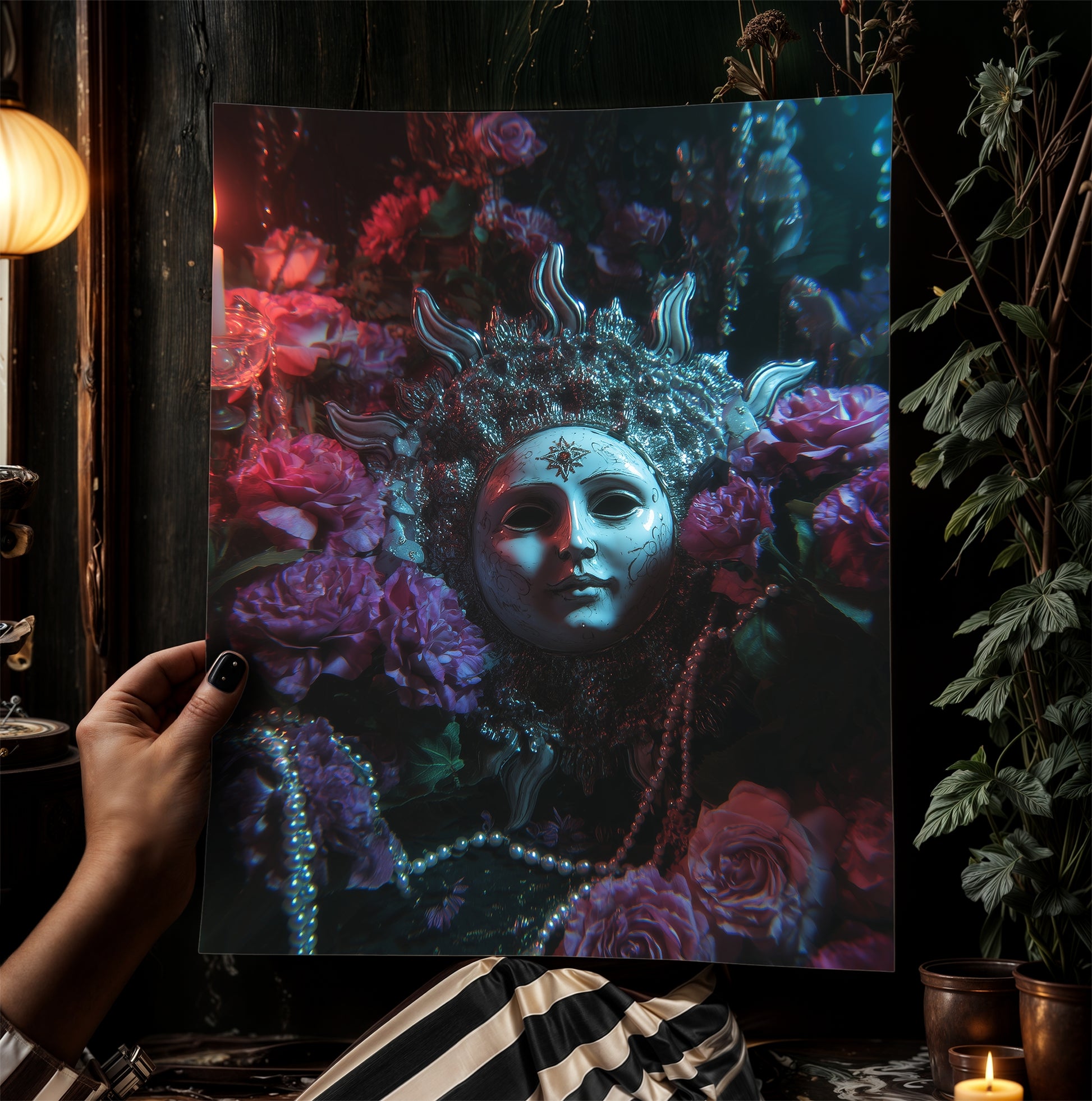 Dark Whimsical Sun Art Print, 90s Whimsigoth Decor, Celestial Magical Home Decor, Sun & Moon Poster, Cosy Witchy Print