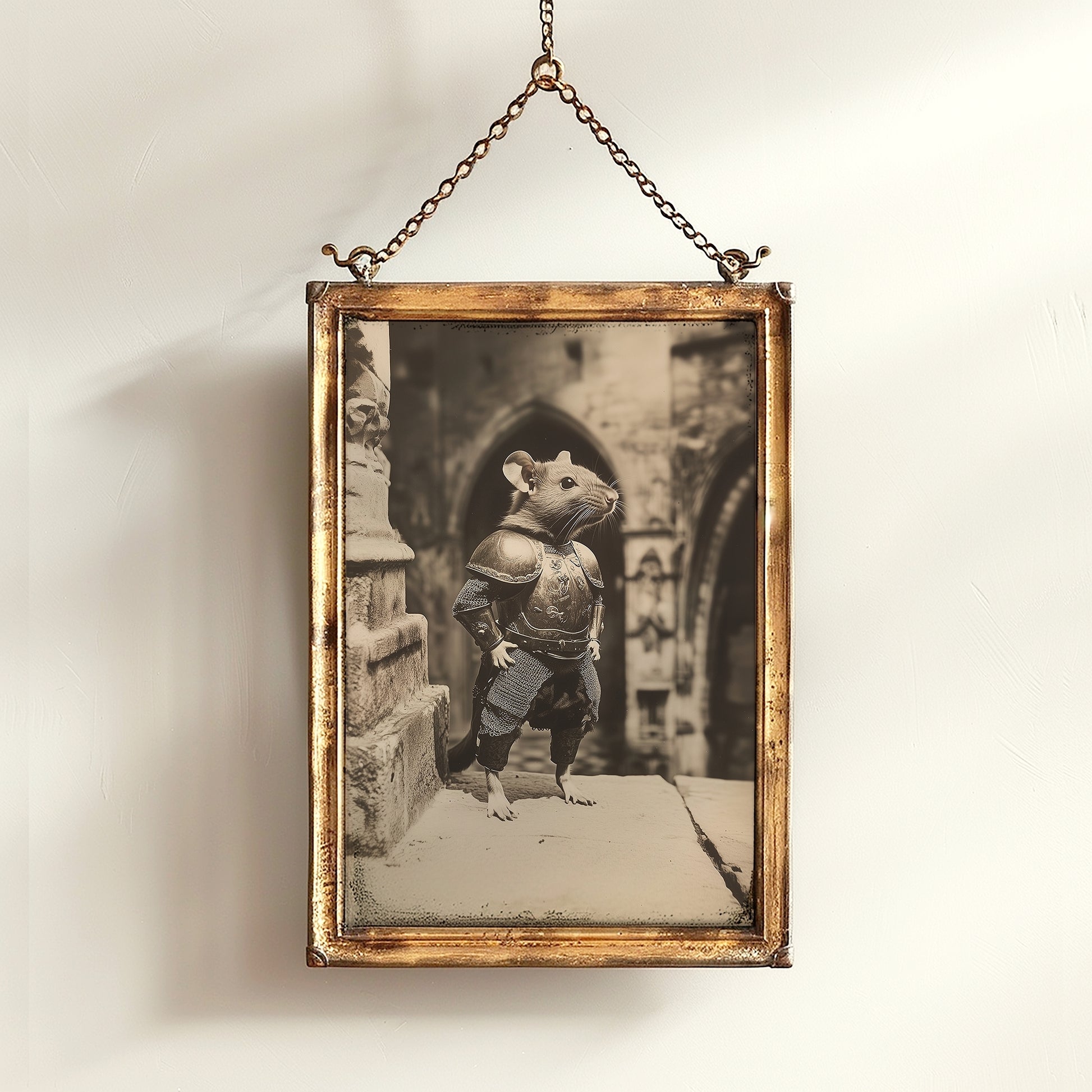 D'artagnan, Vintage Rat Knight Wall Art Hanging, Medieval Mouse Warrior Print in Armor, Castlecore Poster, Rat Lover Gift