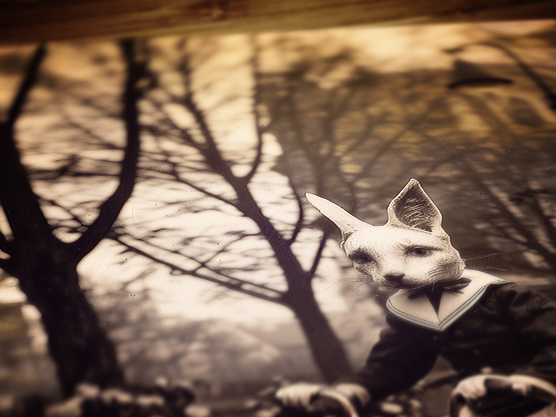 Gothic Fox On A Bike, Victorian Vintage photography, Weird Spooky Art Print, Occult Poster. Odd & Creepy, Dark Academia Decor