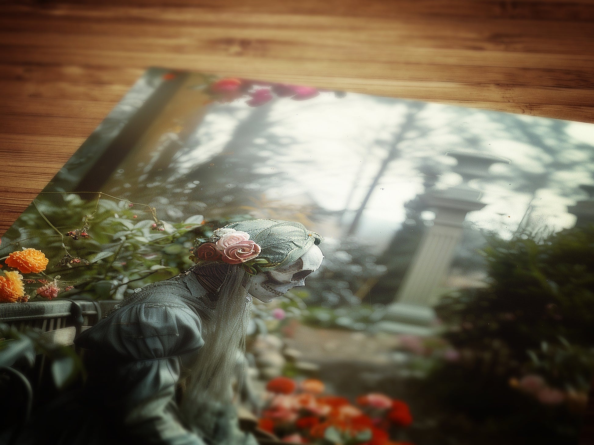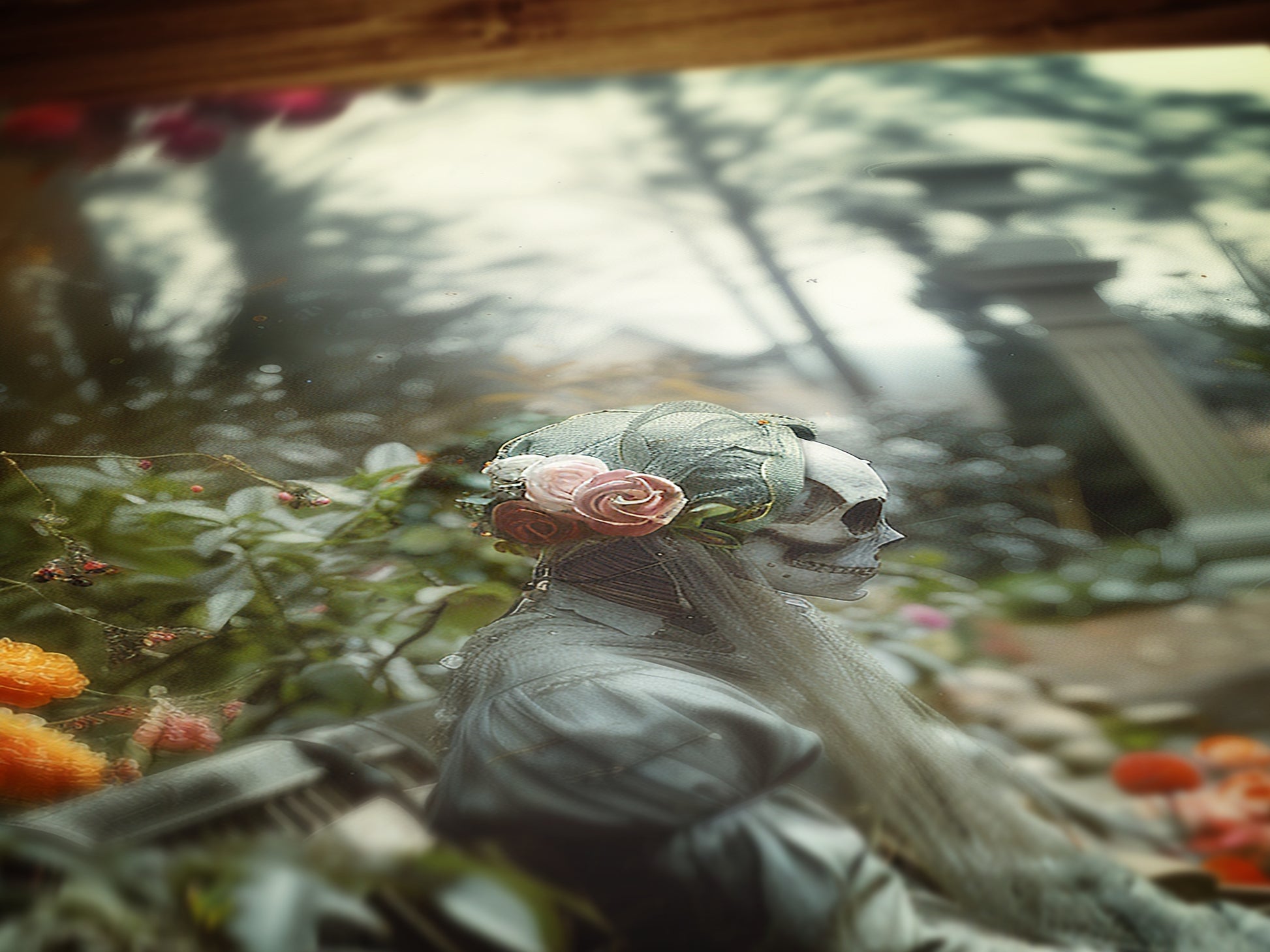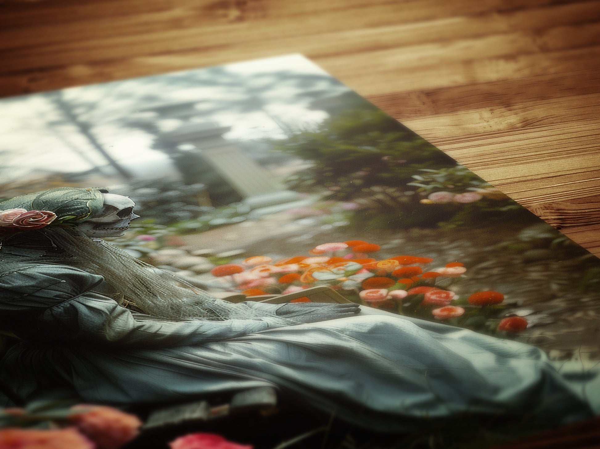 A quiet figure rests in a flower-filled garden, wrapped in stillness and mystery. This moody wall art evokes themes of eternal love, memory, and the beauty in the macabre π₯π«οΈ. Perfect for those drawn to gothic aesthetics, haunted romance, and art that speaks softly from the shadows.