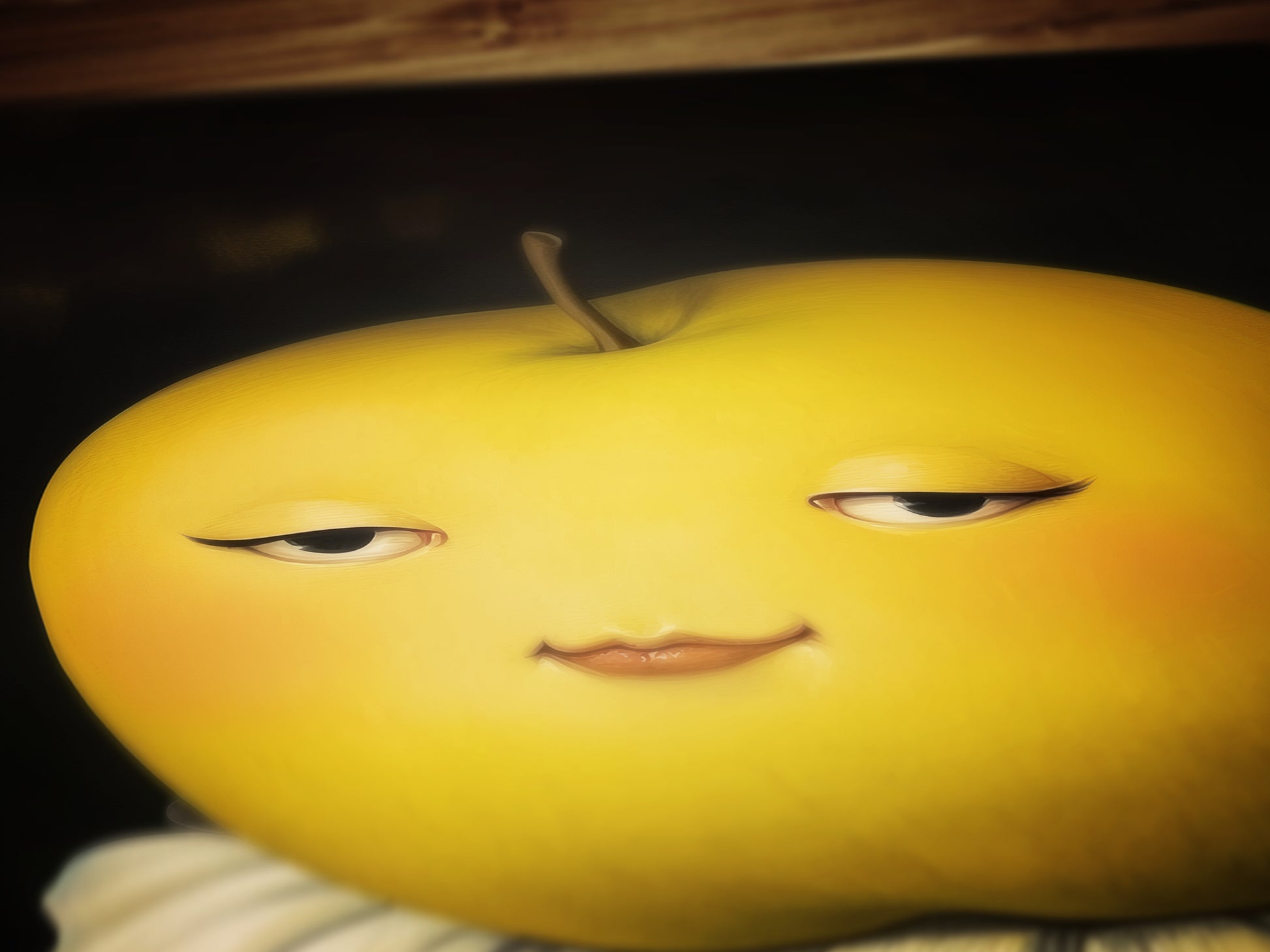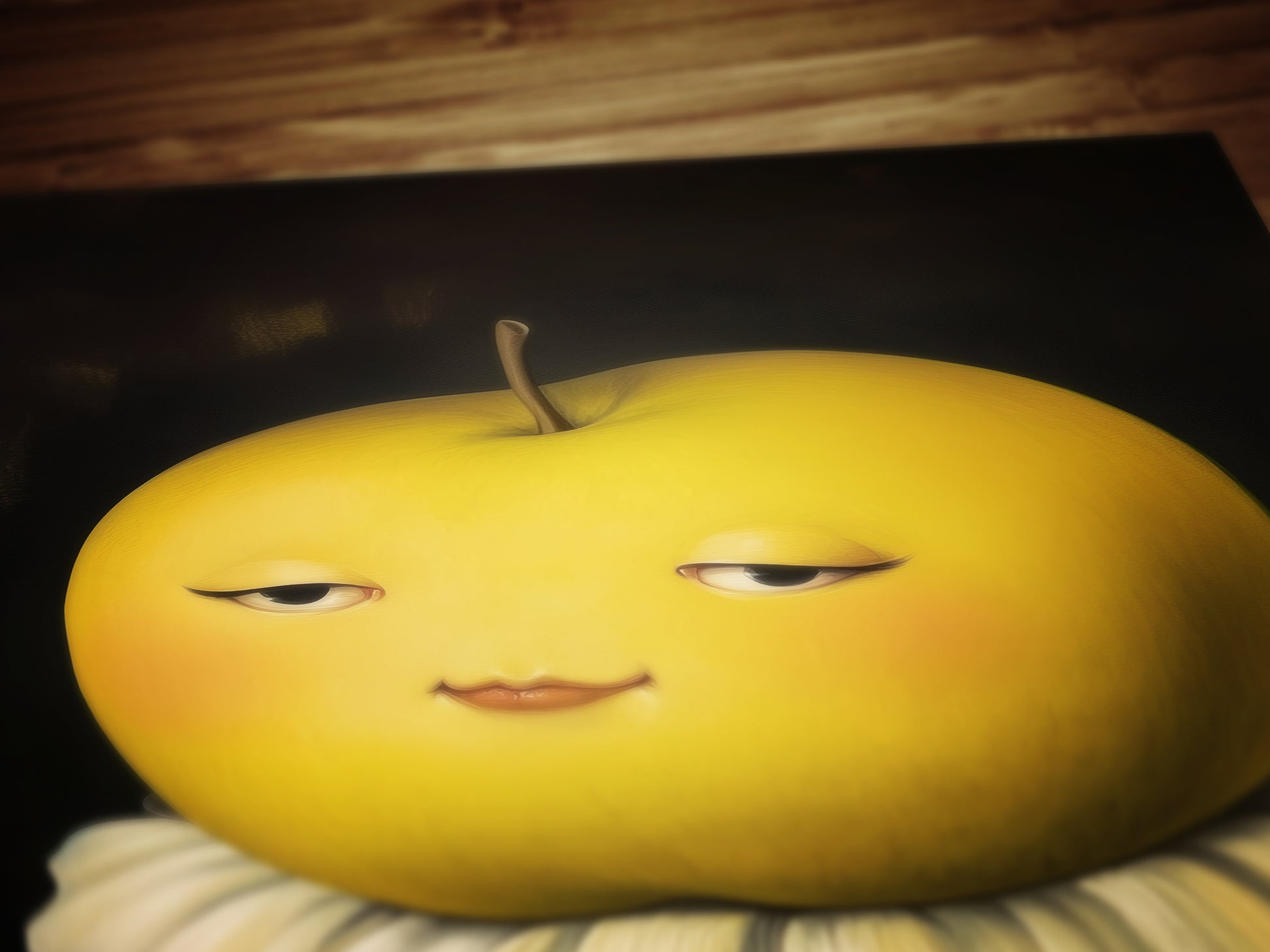 Cute Pensive Apple Poster, Antique Fruit Art Print, Renaissance Food Portrait, Surreal Still Life Painting, Quirky Weird Funny Kitchen Decor