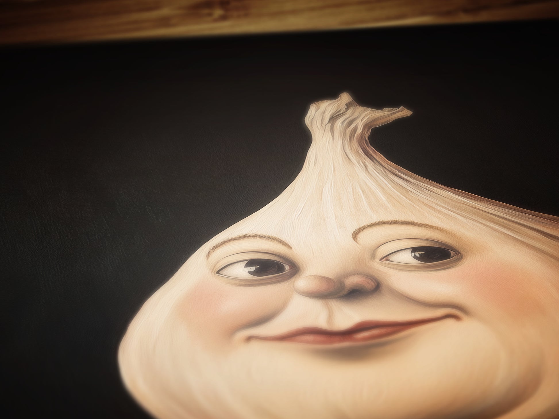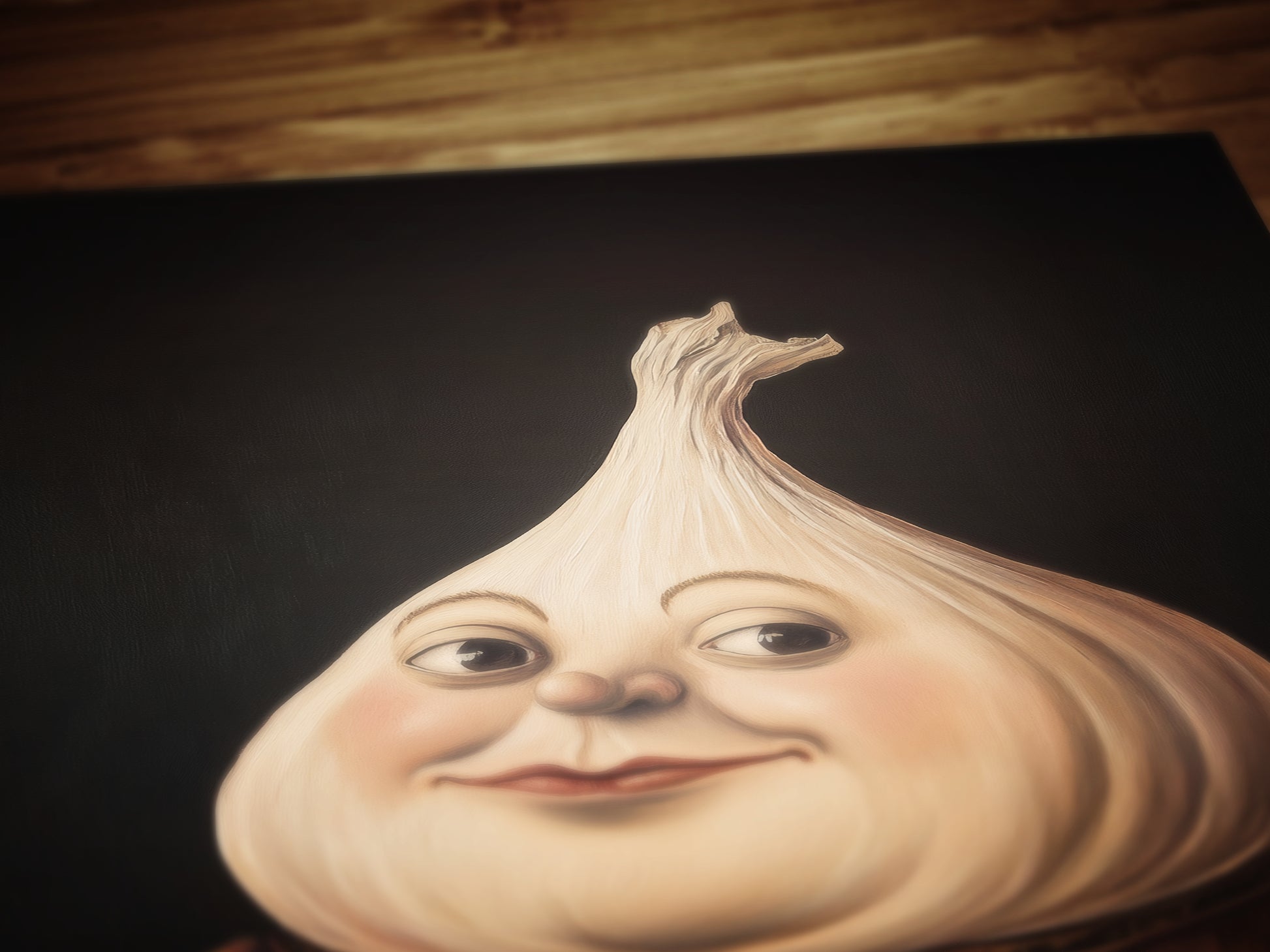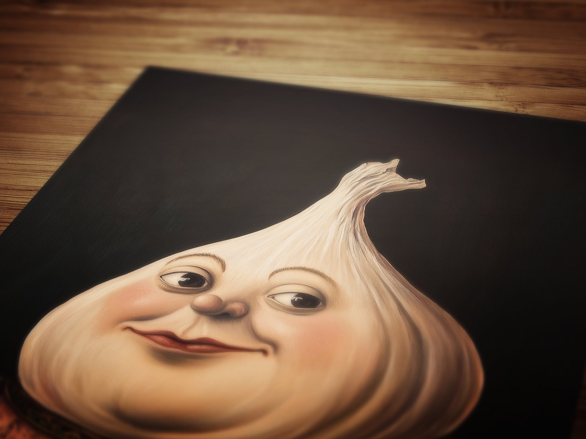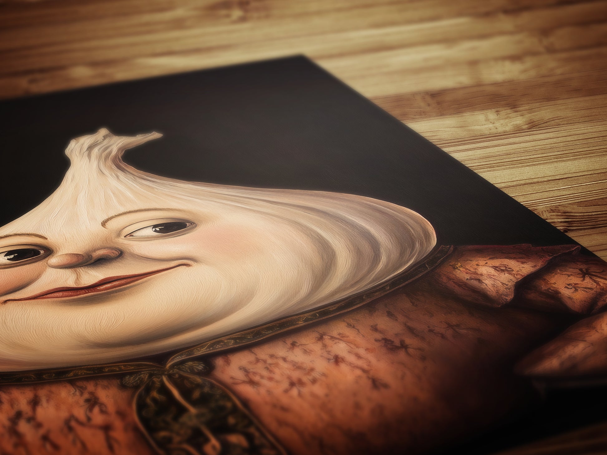 Bring a taste of the unexpected to your home with this goofy yet delightfully funny and bizarre whimsy garlic art print painting! π§π§
