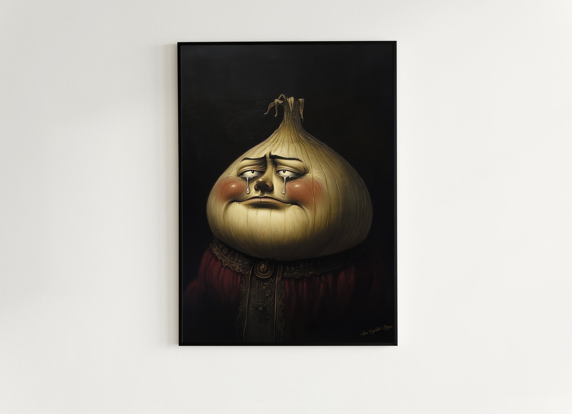 Crying Onion Poster, Antique Vegetables Art Print, Renaissance Food Portrait, Surreal Still Life Painting, Quirky Kitchen Decor