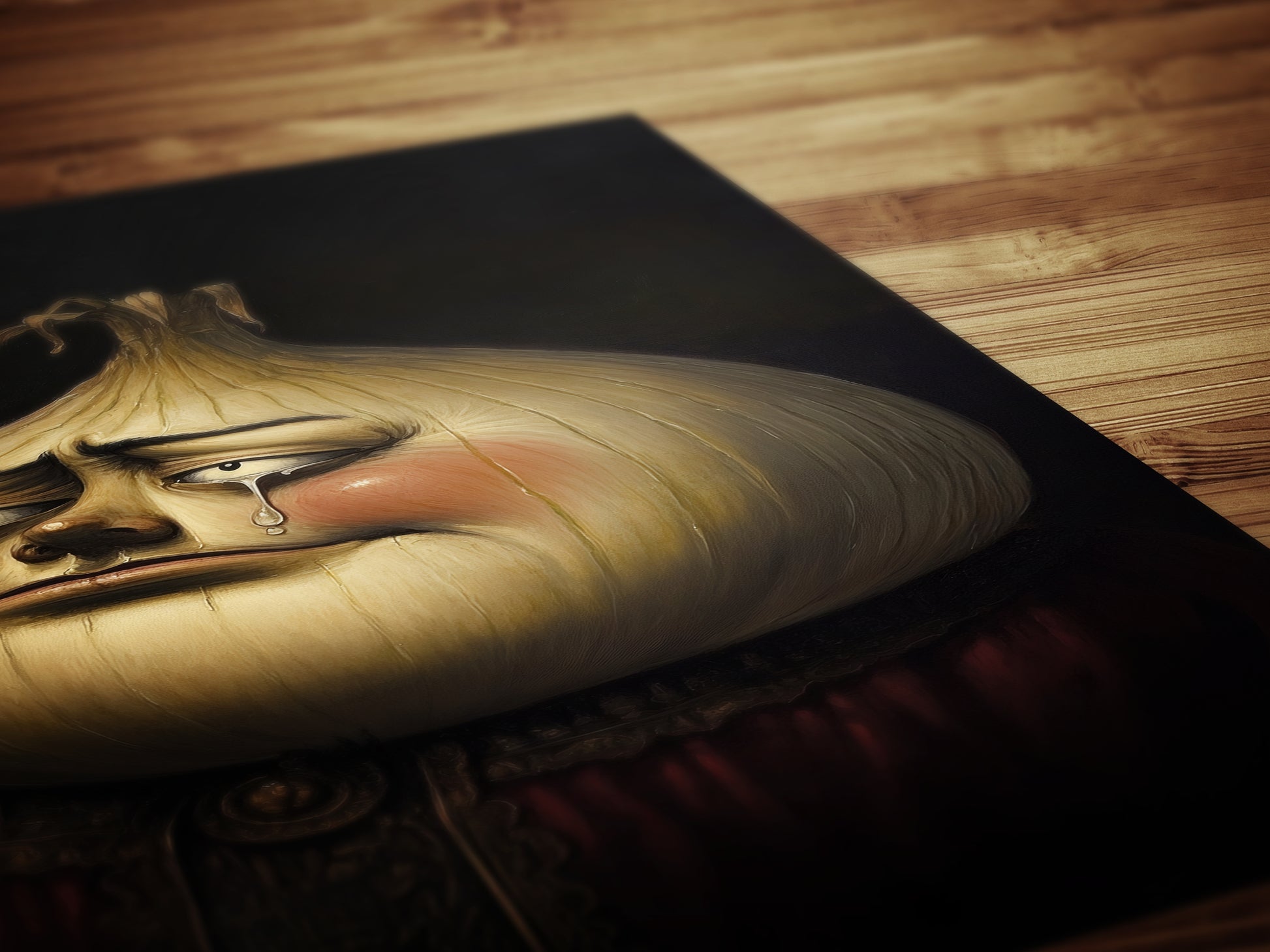 Bring a taste of the unexpected to your home with this goofy yet delightfully funny and bizarre whimsy crying onion art print painting ! π§