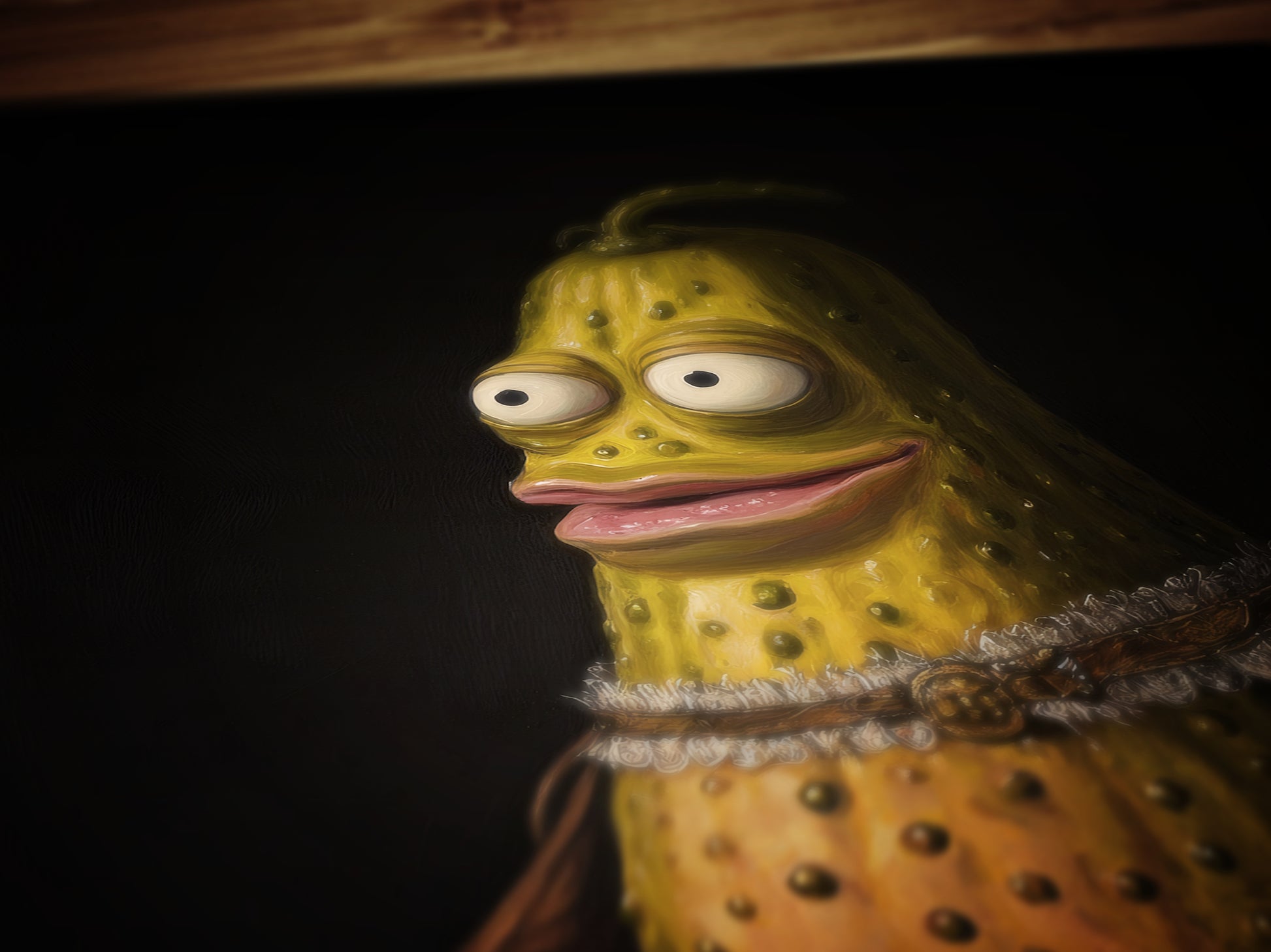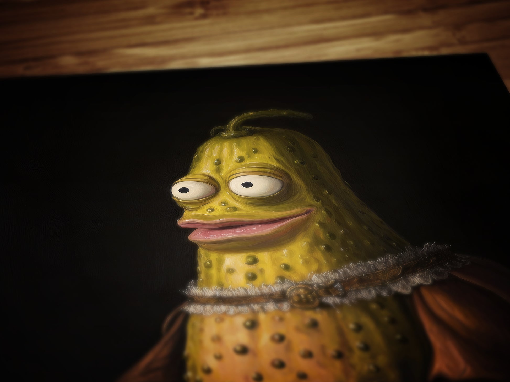 Weird Pickle Poster, Antique Vegetables Art Print, Renaissance Food Portrait, Surreal Still Life Painting, Weirdcore Funny Kitchen Decor