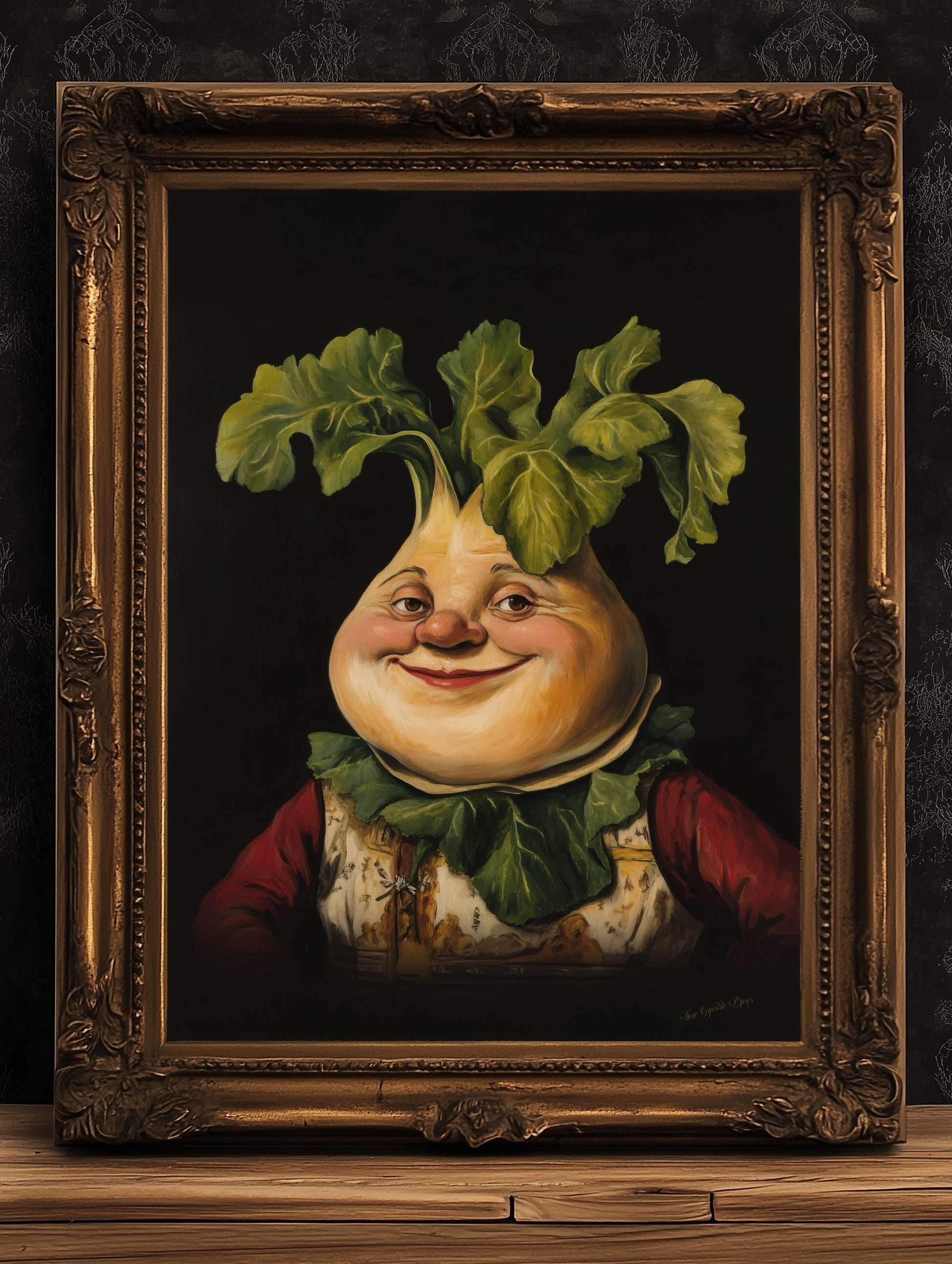 Rutabaga Turnip Poster, Antique Vegetables Art Print, Renaissance Food Portrait Surreal Still Life Painting, Weirdcore Funny Kitchen Decor