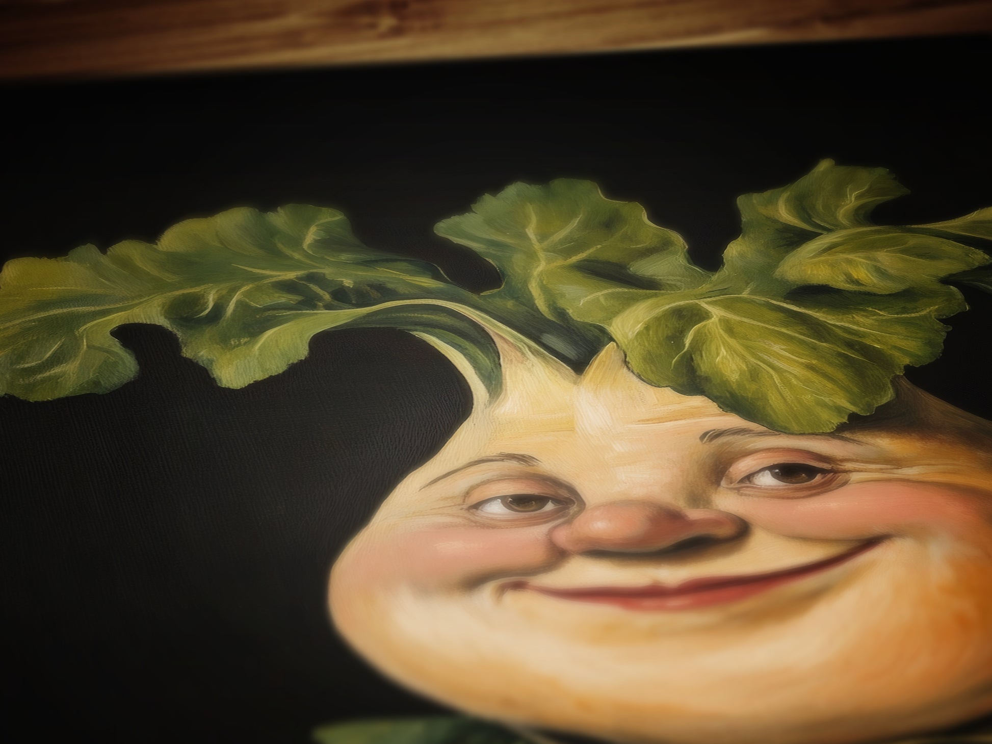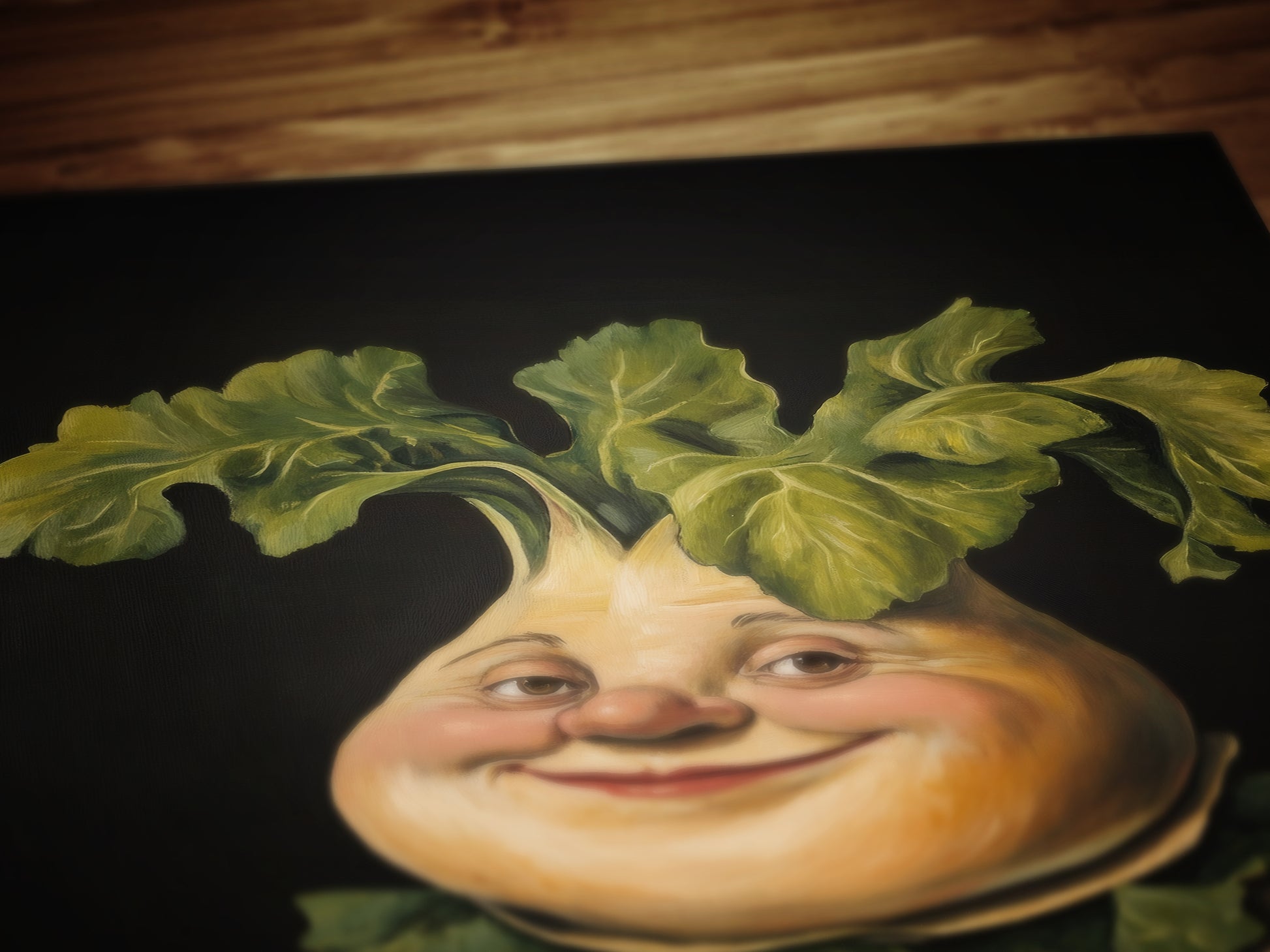 🥬🥔 Bring a taste of the unexpected to your home with this goofy yet delightfully funny and bizarre whimsy Rutabaga Turnip art print! 🥬