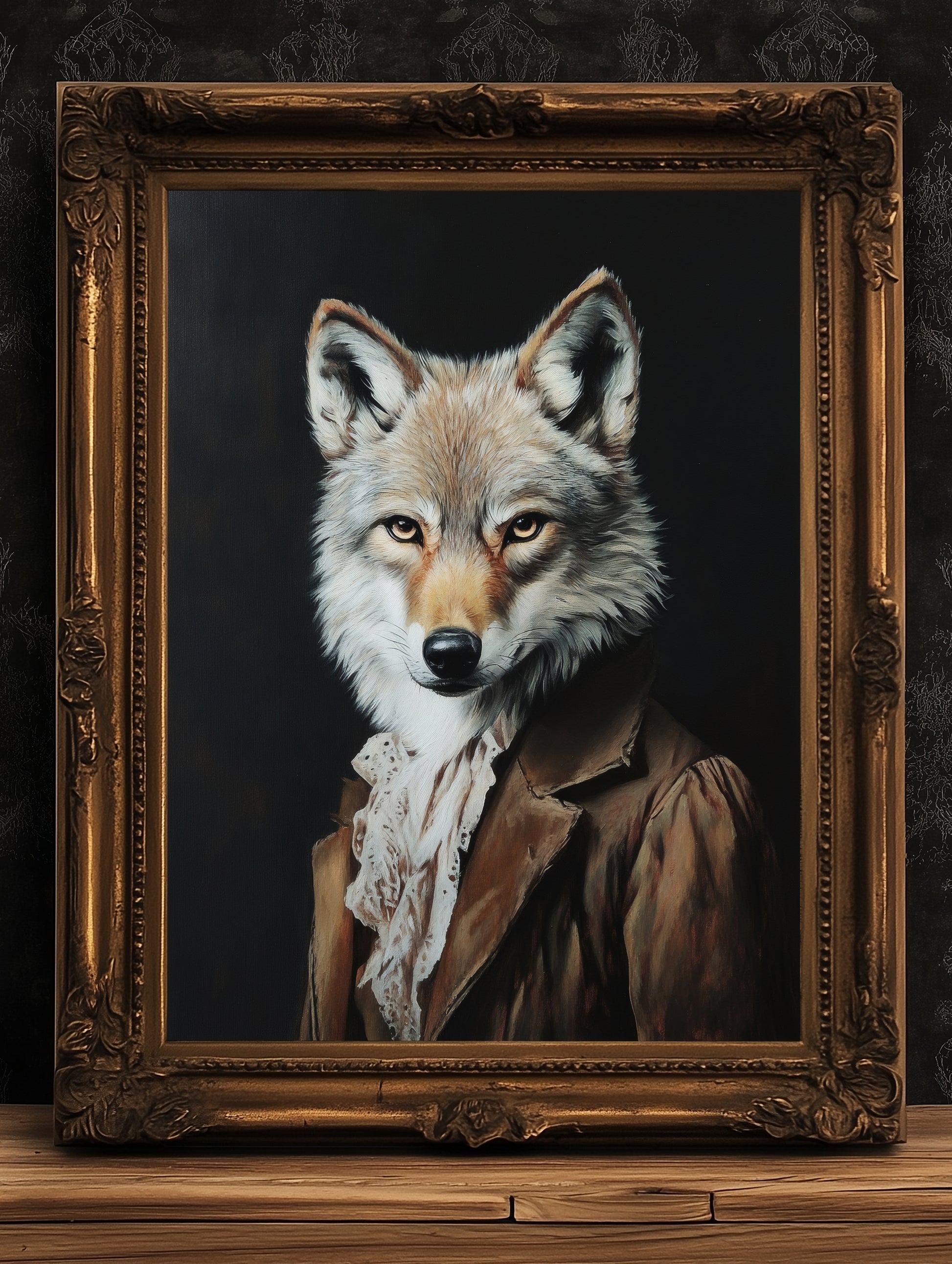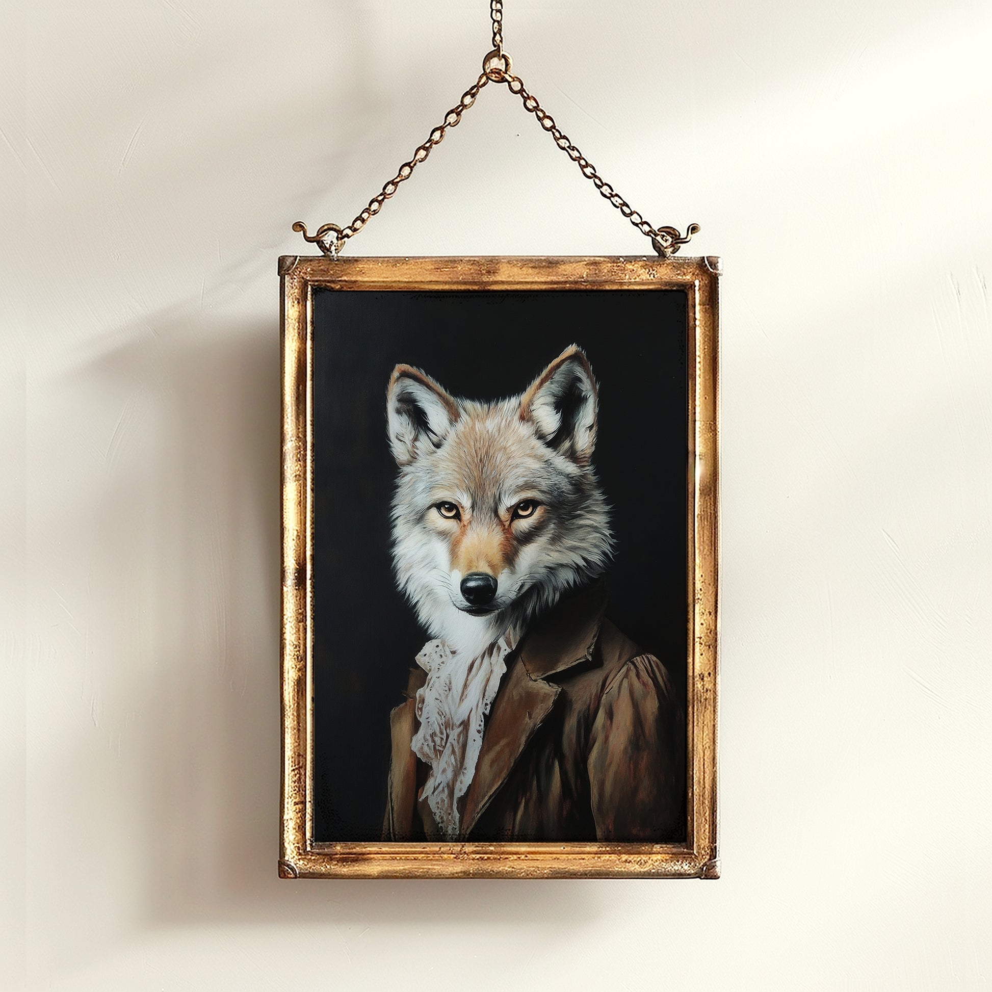 Gothic Wolf Portrait, Dark Academia Wall Decor, Funny Royal Pet Painting, Vintage Animal Lover Gift, Quirky Wolf Art Print