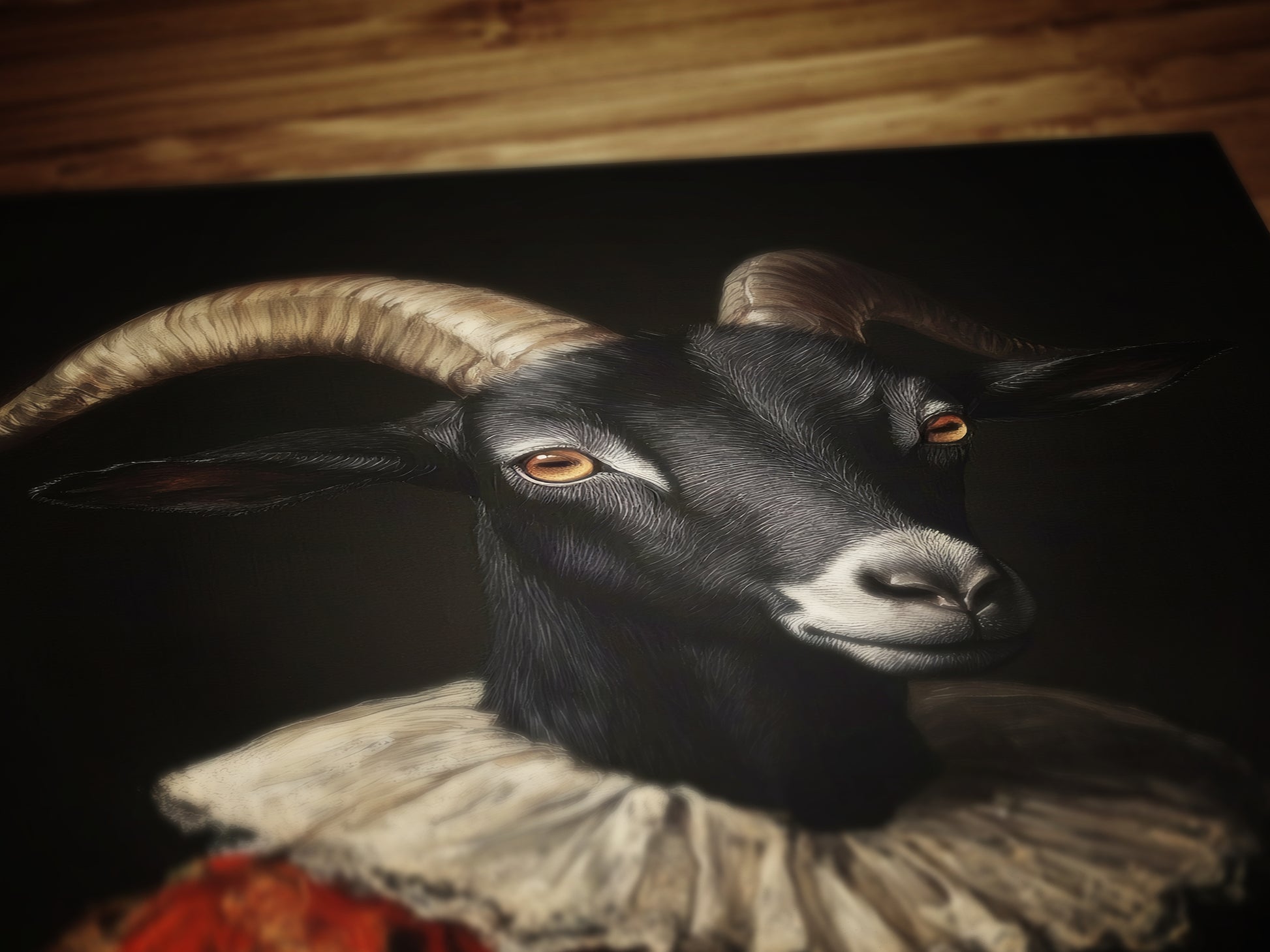 Gothic Black Goat Portrait, Dark Academia Witchy Wall Decor, Royal Pet Painting, Vintage Animal Lover Gift, Quirky Black Phillip Art Print