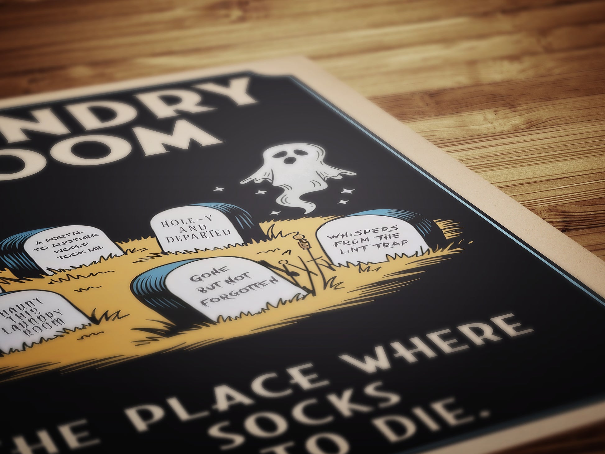 ✨ High-quality spooky laundry room print that blends humor with a ghostly twist