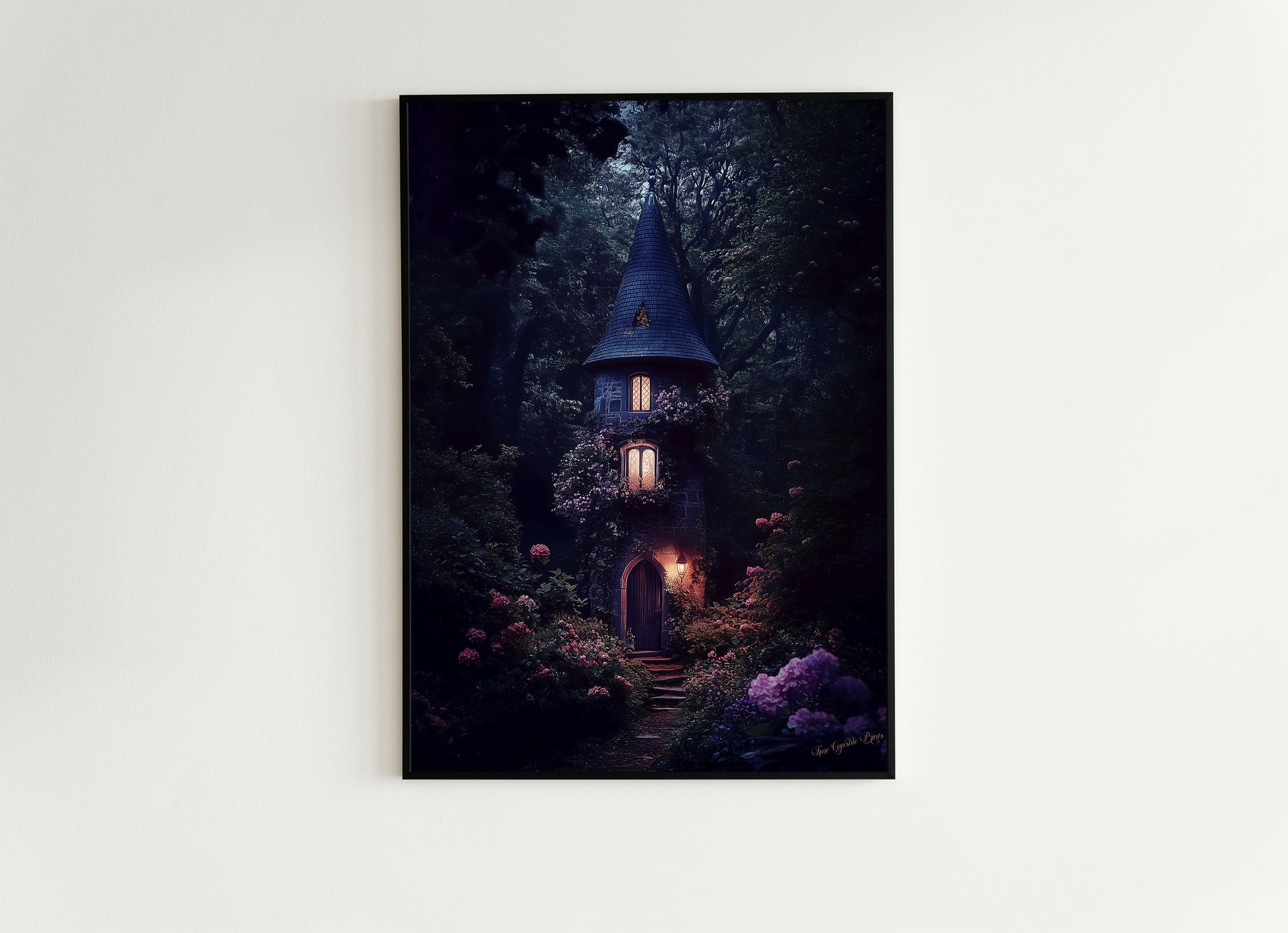 Enchanted Cottage Wall Art, Dark Fairytale Cottage Print, Whimsigoth Fantasy Decor, Gothic Forest House Poster, Mystical Witchcore Aesthetic