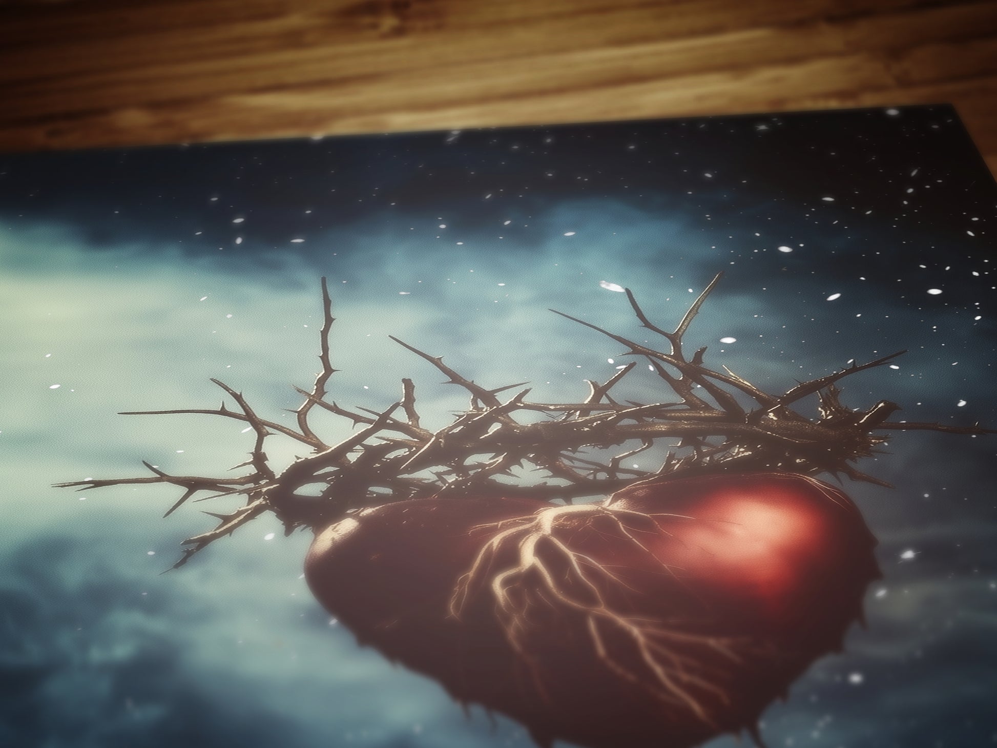 ❤️ Sacred heart wrapped in thorns, floating in deep space