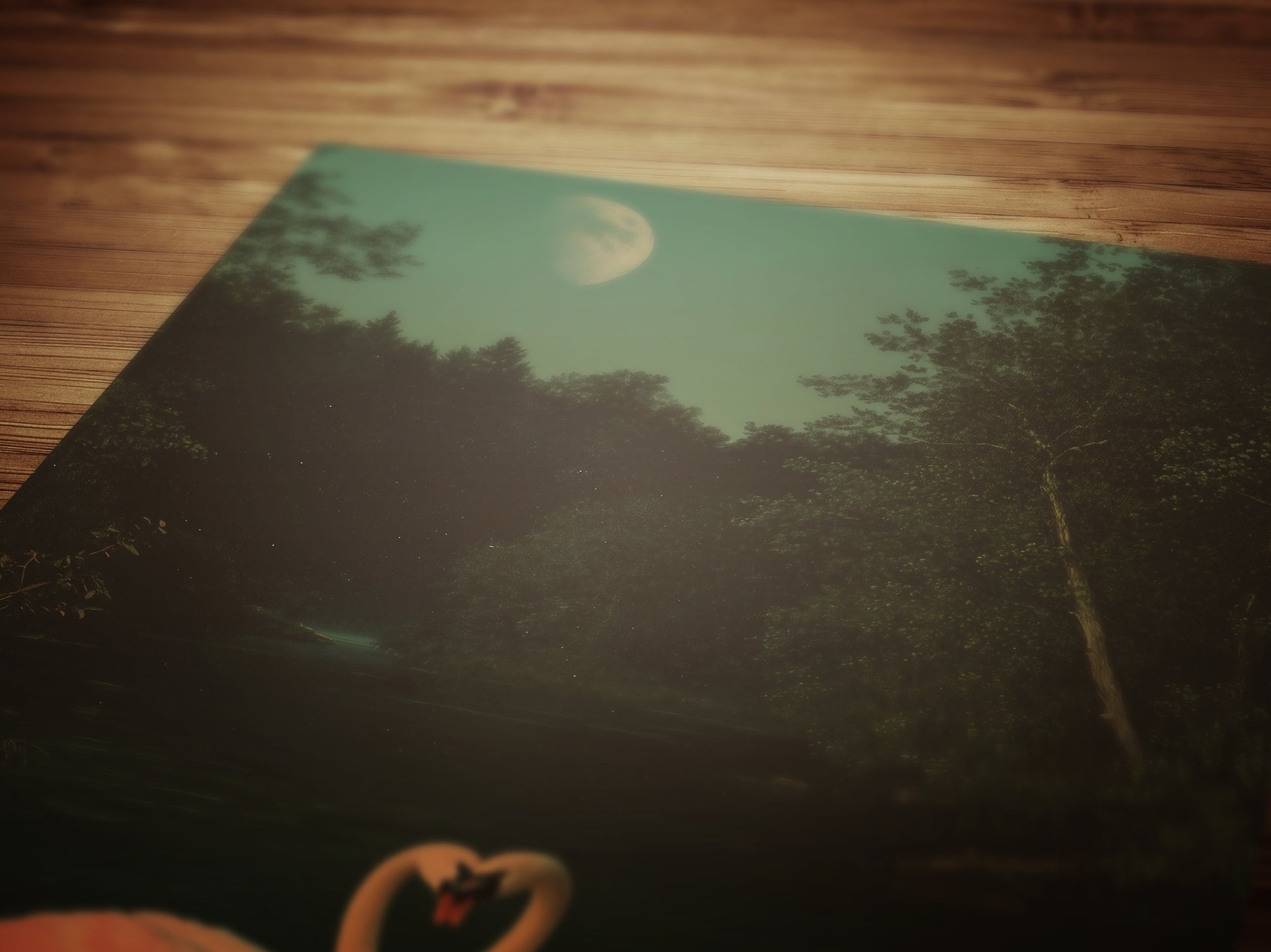 This dreamy and romanticly gloomy artwork features two swans facing one another on a tranquil lake, their necks forming the shape of a heart beneath a glowing moon. Surrounded by soft floral details and lush forest shadows, the piece blends vintage Victorian elegance with fantasy and whimsigoth charm. Styled like a classical oil painting, it’s perfect for those drawn to moody gothic romance, soft academia, symbolic animal imagery, and enchanted nature scenes 🌙🦢💕