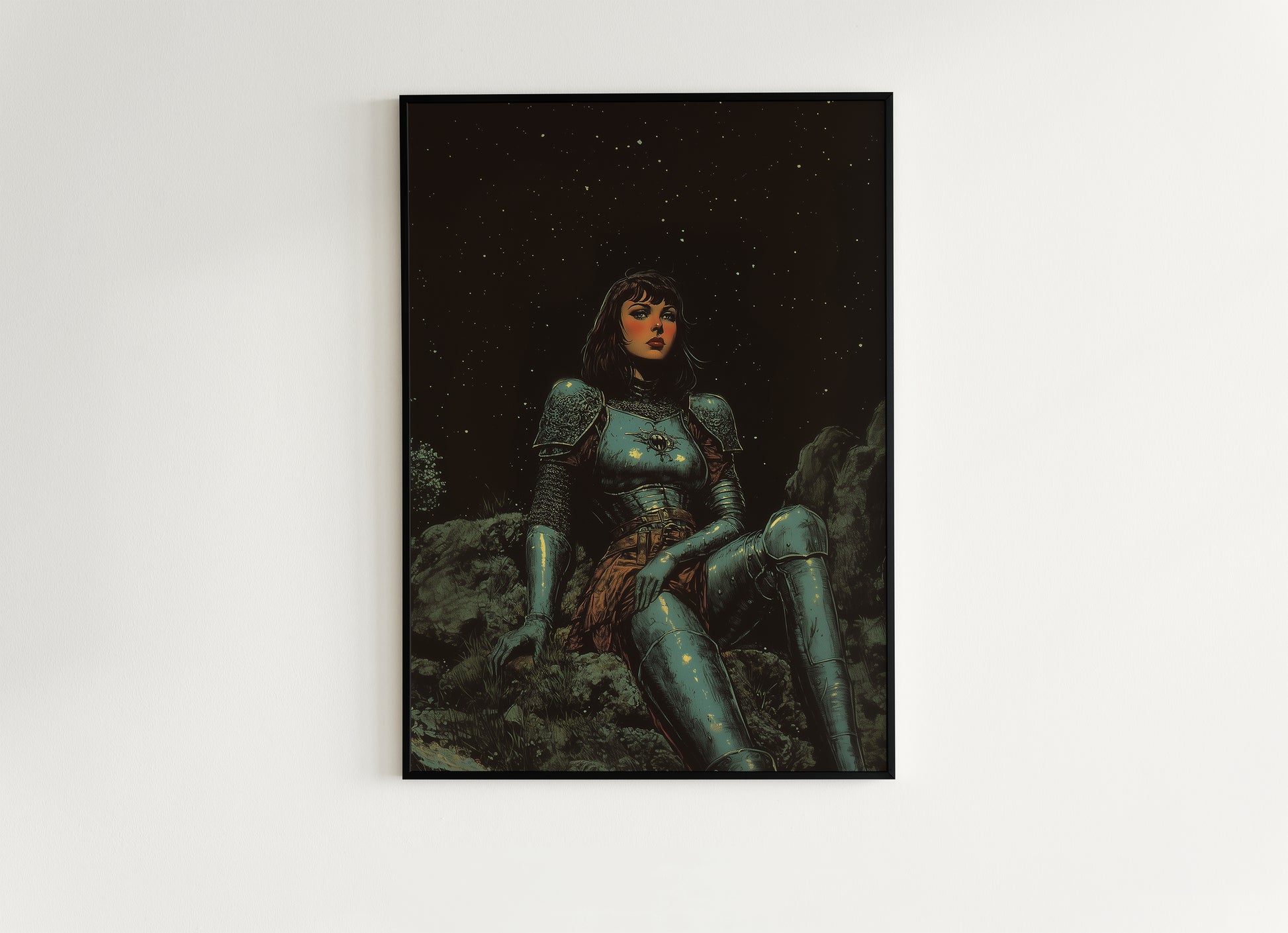This striking fantasy poster captures a fierce lady knight resting under a star-drenched sky, her shining armor glowing with ethereal strength and elegance. With a look of resilience and mystery, she embodies courage, romance, and medieval wonder ππ‘οΈπ Perfect for lovers of castlecore, dark academia, and whimsical fantasy worlds like ACOTAR and Lord of the Rings.